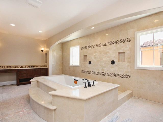 Brand New Estate Home in Alta Del Mar, approximately 6,235 sq. ft. and this home has it all, with the kind of spaciousness, appointments and craftsmanship that equals the finest custom home anywhere. This beautiful home features 5 bedrooms, 5 full bathrooms plus a powder room, teen room, library and a large motor court to enter the two 2 bay garages. The master suite has a master retreat and a sleeping porch with fireplace and wet bar over looking the canyon and much much more!