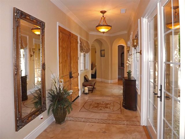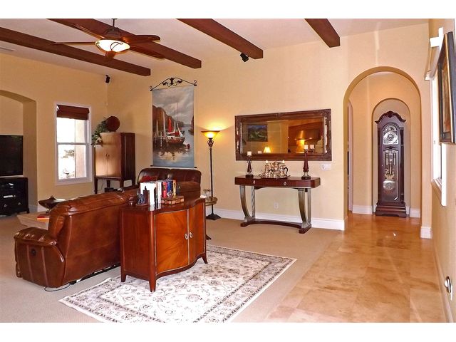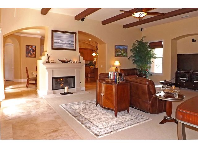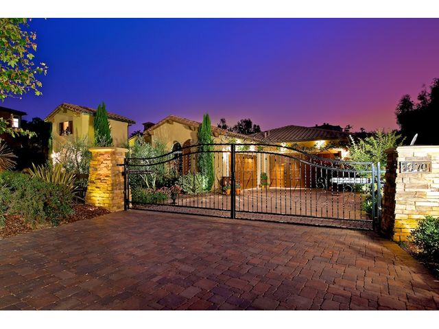 RARELY AVAILABLE SINGLE LEVEL ESTATE on private full acre lot,yet close to Torrey Pines Beach,shops,restaurants,HWYs,Del Mar Union & San Dieguito schools!This gated semi-custom 4,410 SF estate features:5BR/4.5 BA+Bonus room,Tuscan driveways paves in front of 4 car garages,tower entrance to front yard,gated courtyard with arcade, outdoor fountains,flagstone fireplace, travertine flooring,custom paint,crown molding,gourmet kitchen with stainless steel appliances,designer carpet, landscaped backyard,& more!