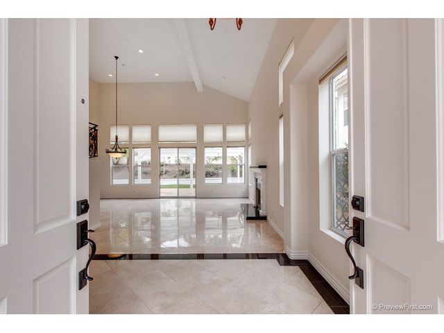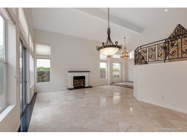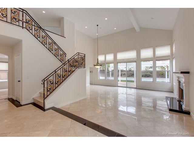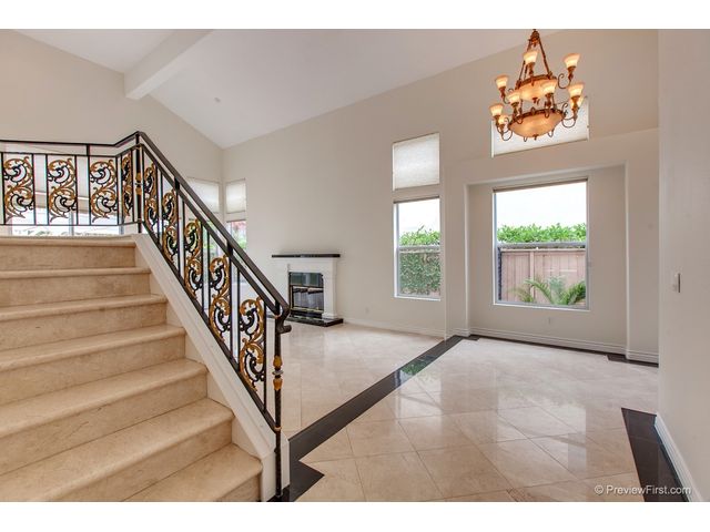 Move-In Ready 5 bedroom, 3 full bath home with over 3000 sq ft of light and bright living space. Grand entrance welcomes you into this Carmel Valley home with soaring cathedral ceilings and towering windows. First level offers a great room, open concept island kitchen, and full bathroom and guest bedroom. The decorative wrought iron and stone staircase leads to the master suite with 5 piece bathroom, and 3 secondary bedrooms all generous in size. Easy to maintain yard with lush grass and patio.