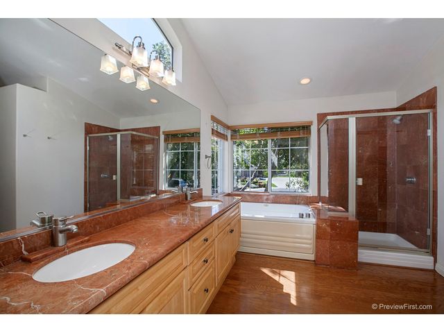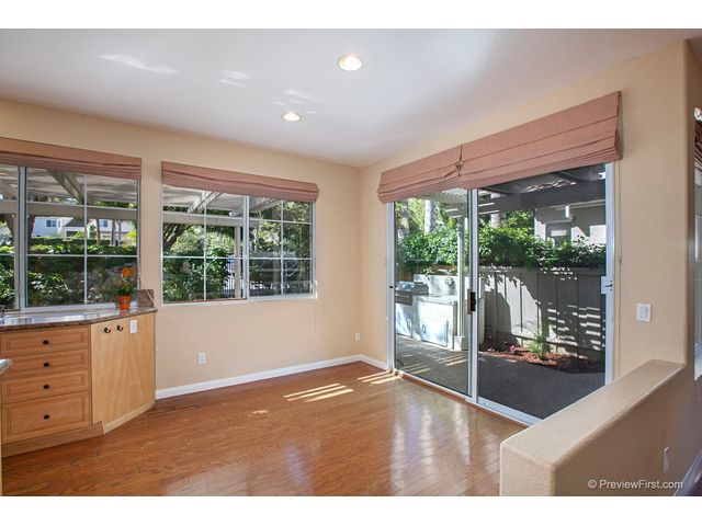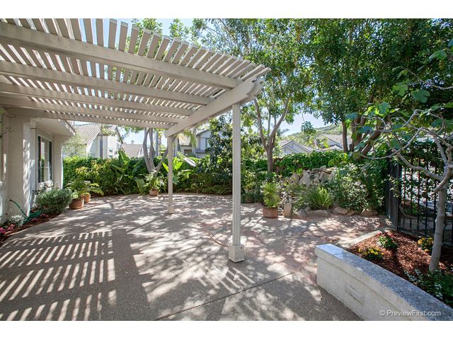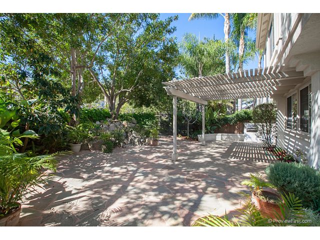 Captivating Palacio Del Mar home features remodeled kitchen with granite and stainless, upgraded baths, gleaming hardwood floors. This light and bright home is on a corner cul-de-sac with direct access to hiking trails and a playground. Designer paint and custom window coverings throughout. An open floor plan that's perfect for entertaining inside and outdoors with beautifully landscaped garden, built-in barbecue. All bedroom closets have been thoughtfully outfitted with built-ins for maximum efficiency.