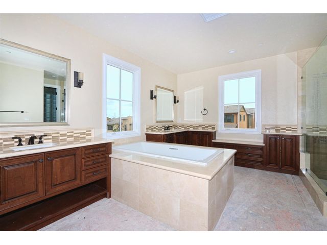 Alta Del Mar / Del Mar Mesa New Construction! Tuscan Style 5 bedroom 4.5 bathroom estate home with a larger lot located on a cul-de-sac with SOLAR! Tastefully decorated with fabulous features: Kitchen has Sub Zero built in refrigerator, 2 Bosch dishwashers, beautiful quartz counter tops with full backsplash, reverse osmosis. Ceiling Beams in living room, upgraded lighting, upgraded cabinetry, upgraded master sink and shower tile! Estimated move in August 2015