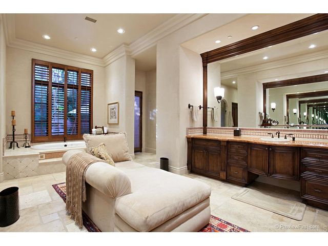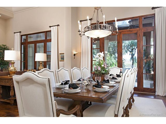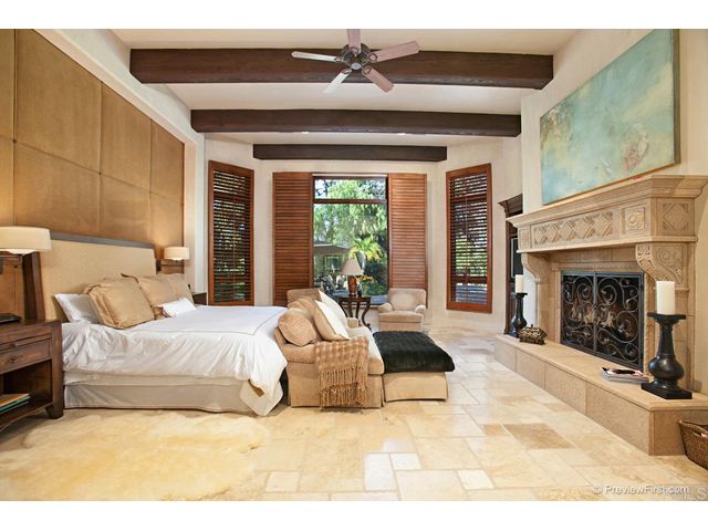 Custom resort-inspired grounds, golf course views, sumptuous interior design...these are just a few of the countless advantages you will enjoy within this spectacular single-level estate in The Bridges at Rancho Santa Fe. Located at the end of a cul-de-sac, the residence boasts 250' of prime golf course frontage, complete with fairway, lake and hillside views over the 5th and 6th greens. The 700 sqft covered loggia heated by a fireplace is an ideal year-round living and dining room. Not included in sqft.
