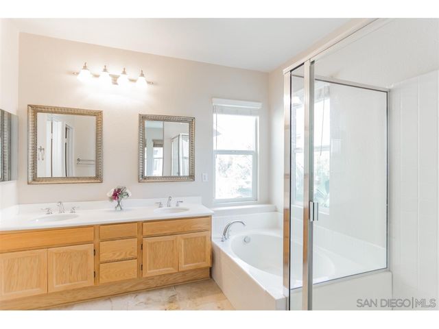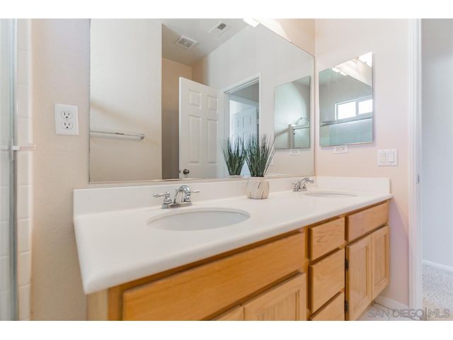 Low HOA & Mello Roos! Gated Community of Garden Gate @ 4S Ranch. This highly desirable residence offers 3 bedrooms, 2 1/2 baths, an extra room on 1st level, great size living-dining room combo, designer paint & 2 car garages. Large open kitchen is equipped w/ walk-in pantry, maple cabinetry, beautiful granite counter-top w/ an oversize center island that compliments the travertine flooring. Ton of windows allowing natural light to shine through & clean low maintenance yard is perfect to entertain in.