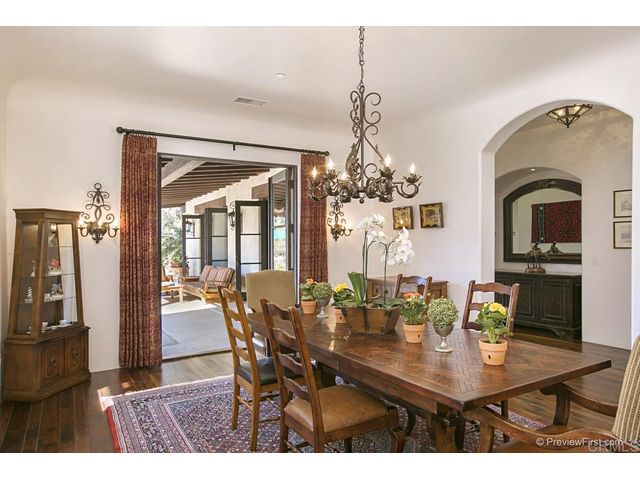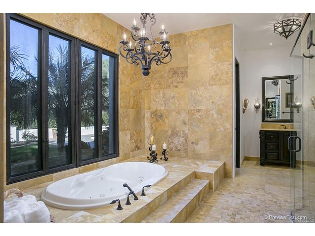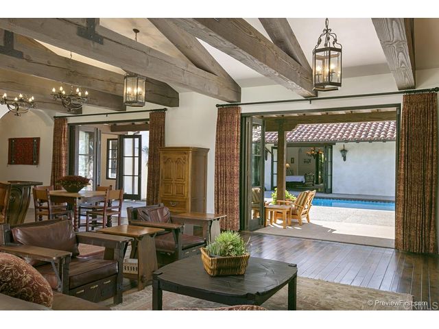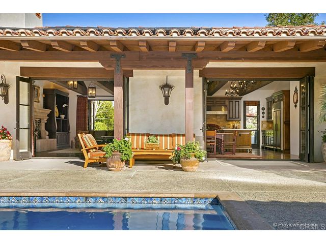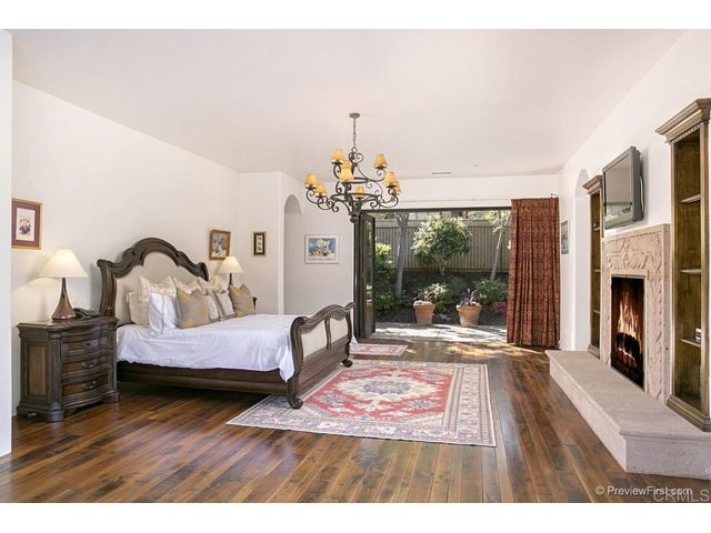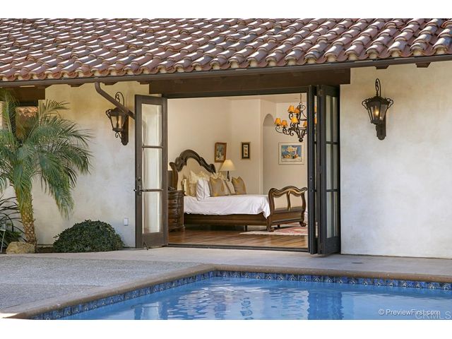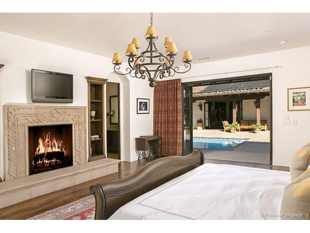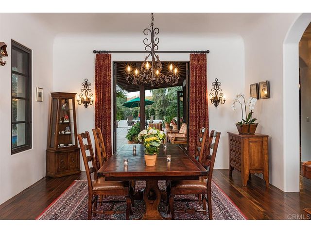 Exemplifying California living at its finest, this impeccably refreshed, architecturally authentic Spanish-inspired courtyard residence is located on the 9th fairway behind the guarded gates of The Bridges at Rancho Santa Fe. The sprawling single-level hacienda reveals 5 en-suite bedrooms, led by a private master suite with spa-like bath, an oversized walk-in closet, and an adjacent built-in office.