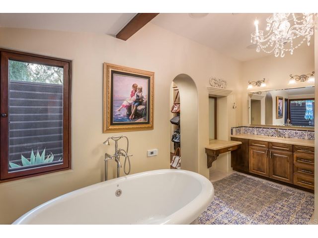 Proudly presenting a rare single level, 5+ bedroom custom estate with a detached guest casita on Del Mar Mesa. This exquisitely designed 6,304 SF residence offers authentic Spanish architectural influences with modern living in mind. Covered patios and outdoor loggias make the easy transition for indoor- outdoor living amongst multiple themed gardens, salt water pool and entertainment decks. Offering acclaimed schools and easy access to all, this homes location uniquely blends rural and refined living.