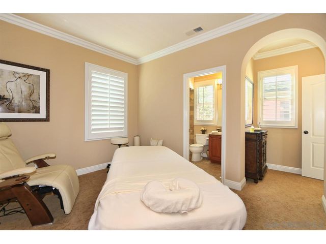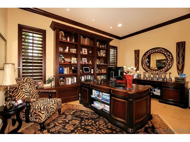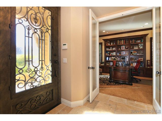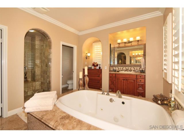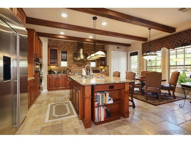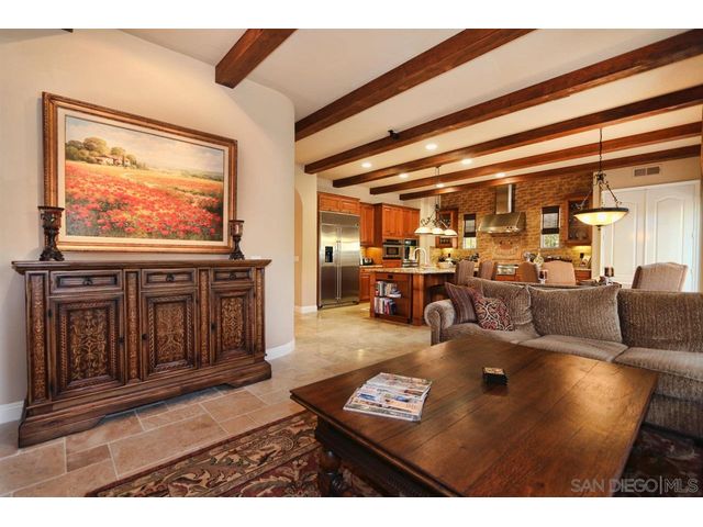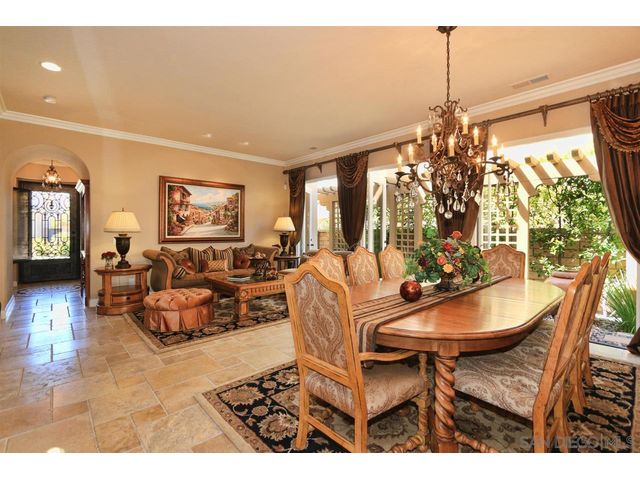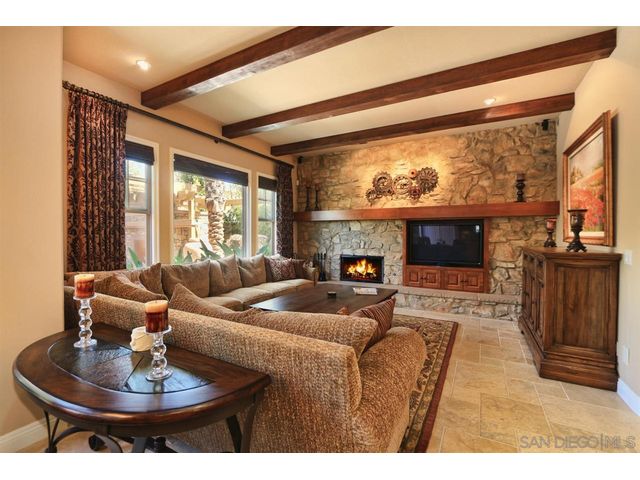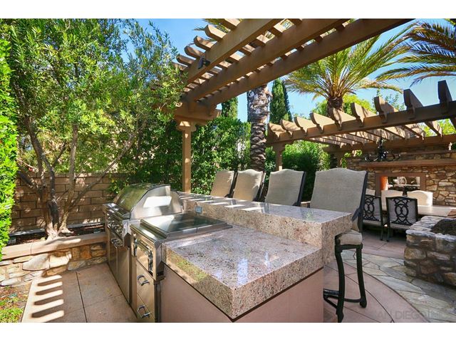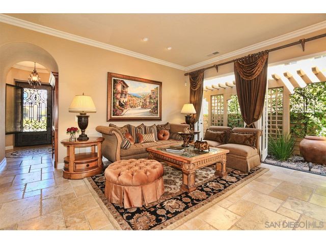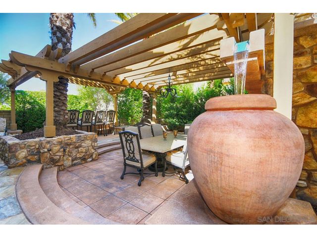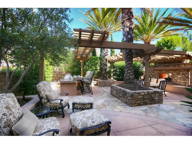 Unquestionable Elegance in the Desirable Community of Pacific Highlands Ranch! Careful and Meticulous Attention to Design & Detail Abound in this Santa Rosa Plan 2 Home! Travertine Floors, Custom Built-Ins, Sculpted Carpet, Stone-Fireplace, Distressed Beams, Crown Molding, Plantation Shutters, Slab Granite, GE Monogram Stainless Steel Appliances! An Entertainers Dream Backyard includes Built-In BBQ w/ Seating for 4, Trellised/Sunken Outdoor Dining Area Seats 8 w/ Dual Fireplace & Casual Living Area.