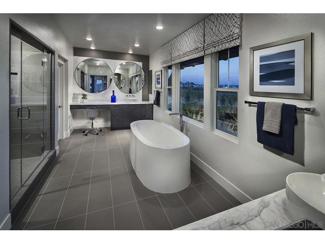 BEAUTIFUL Brand New Construction! October completion. This 4 bed / 4.5 bath with 1 bed and full bath suite on 1st floor. Office/Den and Bonus room. Large Gourmet Kitchen with double ovens, Stainless Steel Bosch/Broan Appliances. Whole house Matte White Cabinetry, upgraded kitchen countertops, full backsplash. Walk to The Village at Pacific Highlands Ranch. Great Schools! Note: Pictures are are of the Model and not of the home for sale.