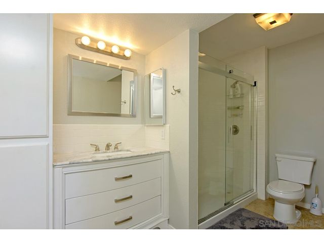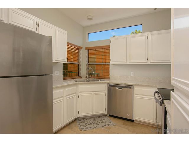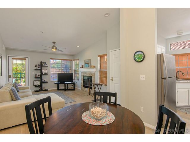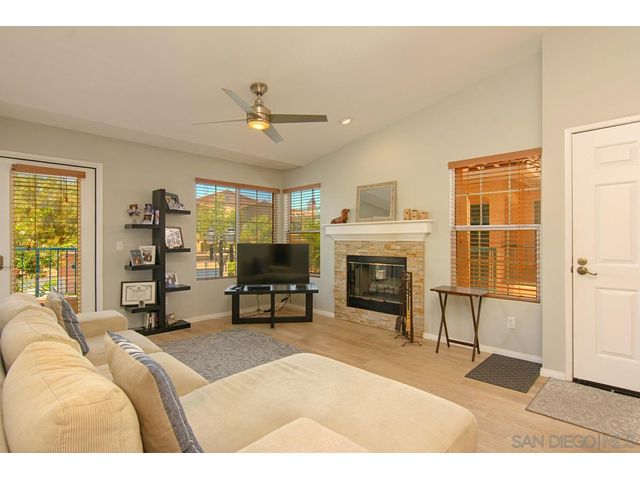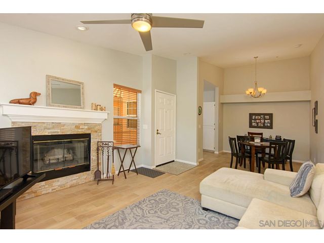 Feel right at home…step onto the woodlike tile flooring then brace yourself for the WOW factor! Beautiful cool soft color painted walls, a cozy stacked stone fireplace, vaulted ceilings, new light fixtures, updated SS kitchen appliances, granite counter tops AND the astonishing remodeled bath with a walk-in shower, subway tiles & sliding glass doors! The unit is beautifully situated for our San Diego sunshine that brightens up this beautiful home. Great location within the complex, this is the one you’