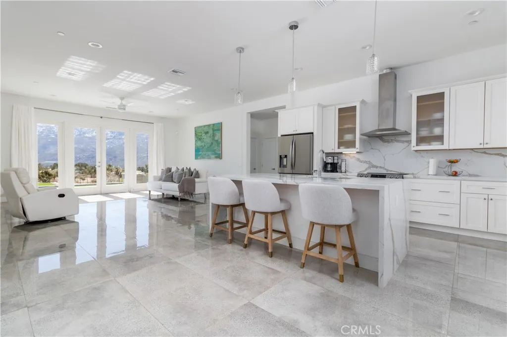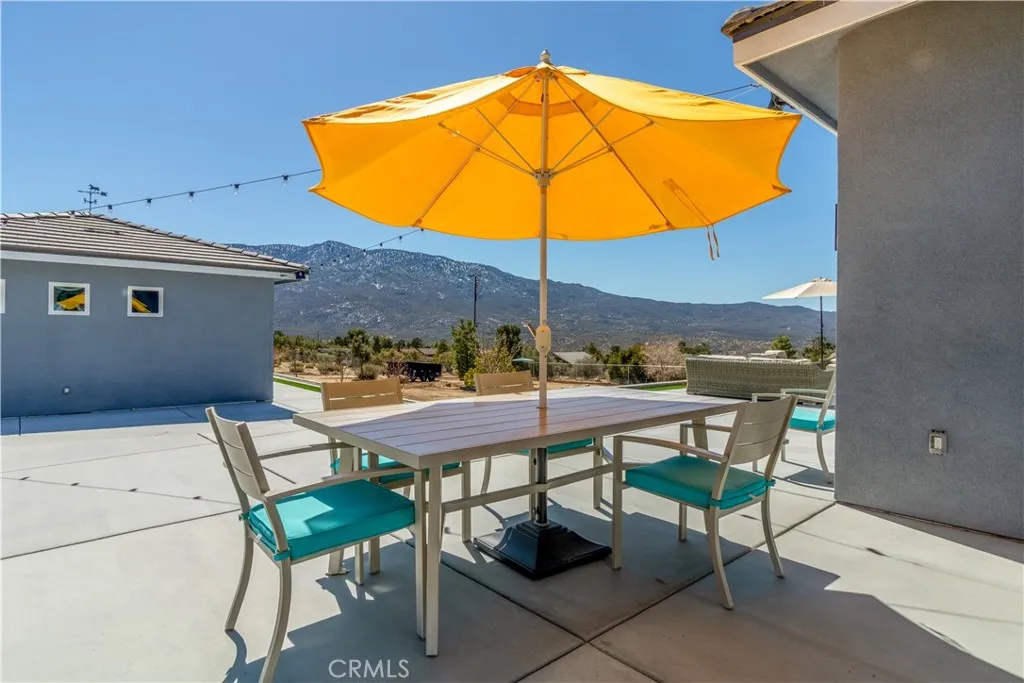 Exceptional modern style, spacious 4 bedroom, 4 bath home, with additional large bonus room that could be additional bedroom, offers a perfect balance of luxury, style and comfort, boasting unrivaled panoramic views of the nearby majestic Santa Rosa and San Jacinto Mountain Ranges ~ Step inside to the light filled open floor plan where large french doors seamlessly blend the outdoor and indoor living spaces, an entertainer's delight ~ Peace and tranquility abound in this semi rural location, just 25 minutes up from Palm Desert's vast array of world class dining, shopping, famous sports and music venues and wonderful medical facilities and schools ~ At a 4,000' elevation you will enjoy a mild 4 season climate, with a more comfortable summer temperature averaging 20 degrees lower than the desert floor ~ This beautiful home was completed in 2023, giving you all the new home benefits, including energy efficiency, solar panels (owned), state of the art security features; Fire prevention features including a dedicated water system for the fire sprinklers throughout, all windows and french doors are dual pane Low-E, efficient heating and cooling system's keep you comfortable 365 days a year and enjoy the convenience of remote start features from your phone ~ The home is 2759 sq', the garage 756sq', the property is a fully fenced and gated 1 acre corner parcel, all usable with beautiful hardscape, leaving plenty of additional space for horses, gardening, great area for dogs ~ A great place to come home to, slow down, relax and enjoy your life ~