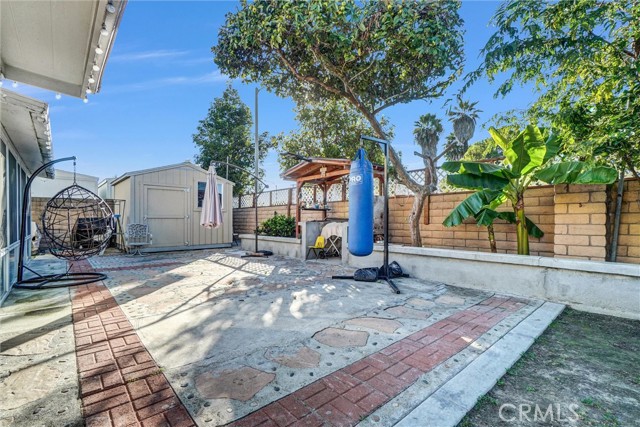 Outside, you'll find a charming courtyard leading to a designated BBQ area under a covered patio—ideal for outdoor dining or simply enjoying California's sunshine. The lot is adorned with various FRUIT TREES, adding to its appeal.
