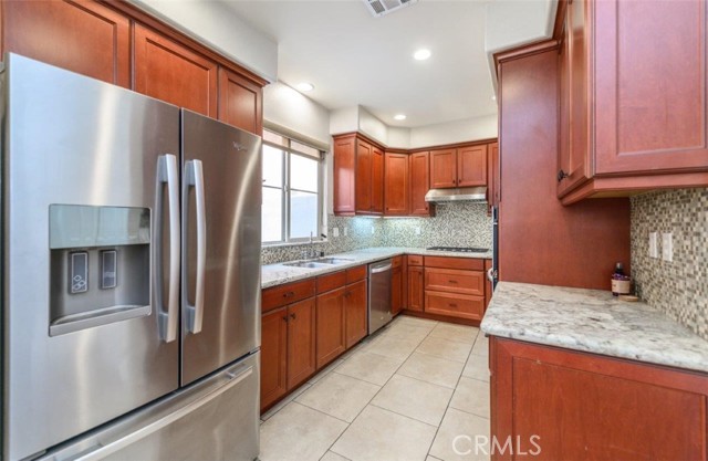 Beautiful highly upgraded 3 bedroom 2.5 bath home. Excellent floor plan. Luxurious master bedroom with huge balcony to enjoy the panoramic mountain and city lights view. Large Master Suite with full bath and walk-in closet. Gourmet kitchen with granite counter tops and coordinating rustic tile back splash. Recessed lighting downstairs. Marble counter tops in one bath with quartz counter tops in the other two baths. Hardwood floors in living room and dining area. Plantation shutters. Mountain views from 2 balconies. Two car attached garage. Huntington courts complex is professional landscaping with fountain and lush foliage. Conveniently located close to 210 and 605 freeways , shopping centers, restaurants and school.