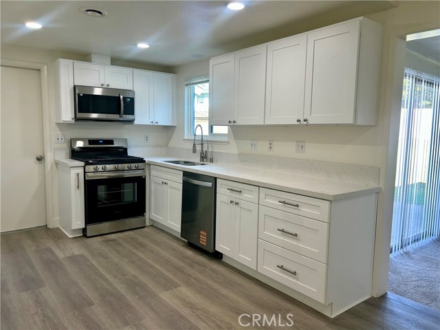 Looking for a new home for the new year? Check out this remodeled single story home on a quiet, tree lined cul de sac in Upland. There are 3 bedrooms, 2 baths, a large bonus room, and an enormous back yard. You'll enter into a comfortable living room with new luxury vinyl plank flooring. The kitchen has quartz counter tops on new cabinets with soft close drawers, recessed lighting, a new stove and new dishwasher. The bonus room has direct access to the back yard. Down the hall you'll find the 3 bedrooms. The primary bedroom has a private 3/4 bath, and the other 2 bedrooms share the hall bath. All the bedrooms and the bonus room have new carpets. The baths are updated too, with new cabinets, lighting, fixtures and hardware. The back yard is quite large, and pets are ok with landlord approval. Freshly painted inside and out, put this one on your "must see" list.