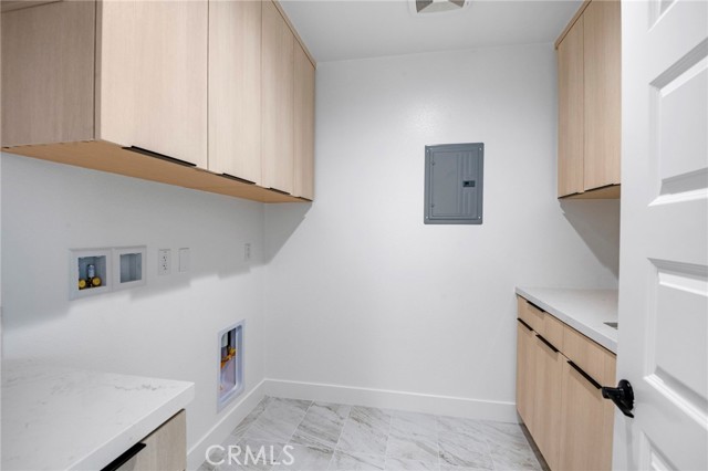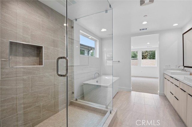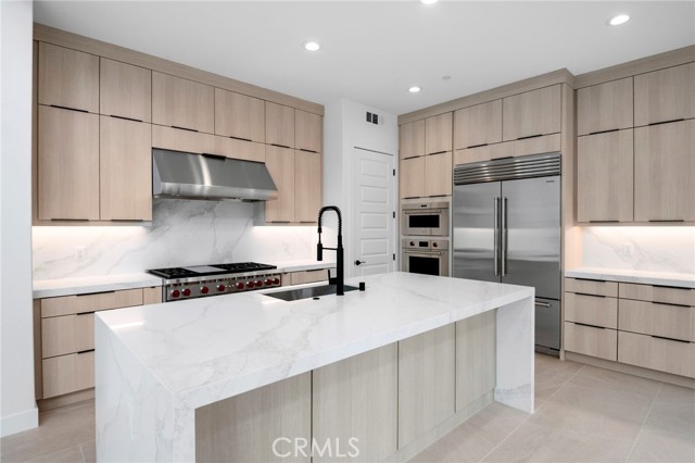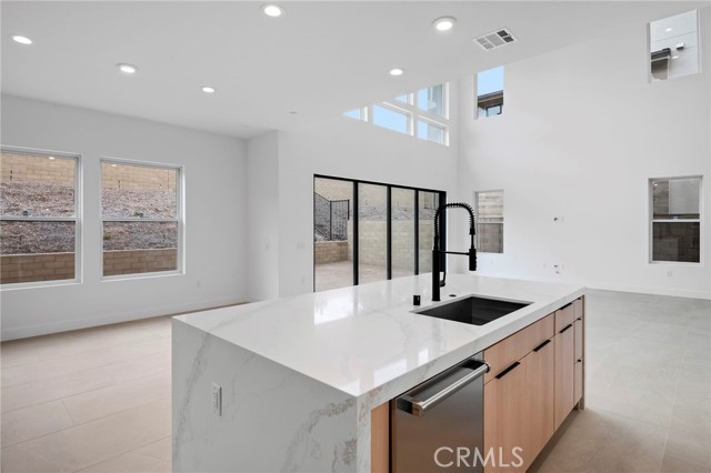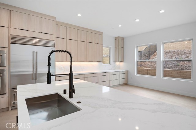 This 5-bedroom, 5-bath home showcases a bright, open floor plan highlighted by a dramatic two-story great room, soaring ceilings, and abundant natural light. The chef’s kitchen is appointed with Wolf and Sub-Zero appliances, sleek marble countertops, and full ceiling-height contemporary cabinetry. All bathrooms are highly upgraded with marble countertops and modern finishes. Additional upgrades include Hunter Douglas premium neutral window coverings throughout, a 5kW solar power system, and EV charging in the attached two-car garage.