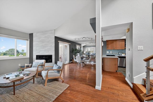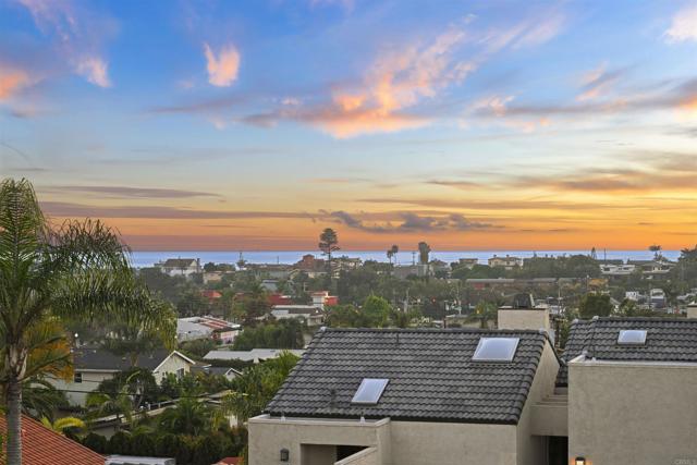 Rarely available in the gated community of Sea Crest, this beautifully updated townhome is steps from Beacons Beach and downtown Leucadia. This 3-bedroom, 2.5-bath home offers panoramic ocean views, 1,554 square feet of thoughtfully designed living space, rich wood flooring, and volume ceilings throughout. The kitchen features quartz countertops, a custom tile backsplash, and stainless steel appliances, opening naturally to the dining area and a private balcony with sunset and ocean views. The primary suite includes dual sinks, stone counters, and a custom tile shower. Two additional bedrooms downstairs share a fully remodeled bathroom with dual sinks, as well as a private patio, offering a quiet outdoor retreat. An attached two-car garage, indoor laundry, and ample storage add to the everyday convenience of this home. The private gated community includes a sparkling pool and lush landscaping with a neighborhood feel. Downtown Leucadia's restaurants, coffee shops, and beach culture are steps away, with easy freeway access nearby. Award-winning Encinitas Union School District.