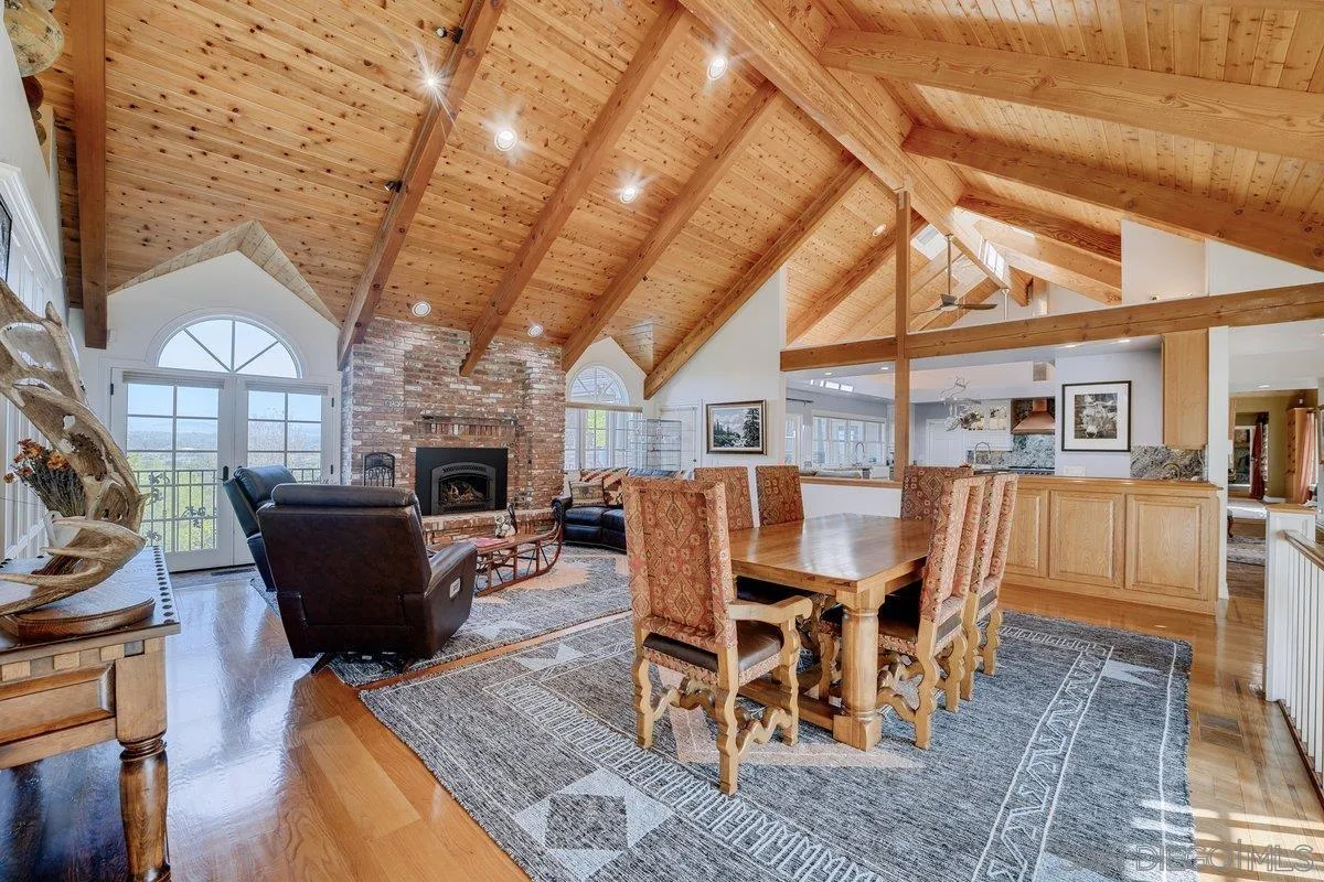 Step into serenity with this custom-built 6,200 SF estate on 3.4 acres in coveted Rolling Hills Estates. Meticulously maintained and landscaped with rose gardens, fountain, koi pond, gazebo, fruit trees and fenced grounds — plenty of room for a barn and corrals with community riding trails adjacent. Paid solar and an irrigation well help keep operating costs low. All principal living is on the main level: 5 bedrooms, 5.5 baths, family room, living room and chef’s kitchen with Viking refrigerator, La Cornue range, Danish copper hood, Bosch dishwasher, limestone floors and built-in wet bar. Soaring wood-beamed ceilings, skylights, wood-inlay and walnut flooring, two dining rooms, two multi-use rooms and a large downstairs recreation area with potential guest-house use. Outdoor kitchen patio features a stone fireplace, wood pizza oven and built-in Viking grill. Primary retreat offers vaulted ceilings, fireplace, built-in coffee/bar, expansive closets and spa-like bath with soaking tub, accent fireplace and walk-in shower. Recent HVAC and septic replacements, full security/camera system, high-end custom finishes throughout. Community amenities include 24-hour guard gate, tennis/pickleball courts, ponds, clubhouse and equestrian facilities. Ready to enjoy country-living with luxury finishes.