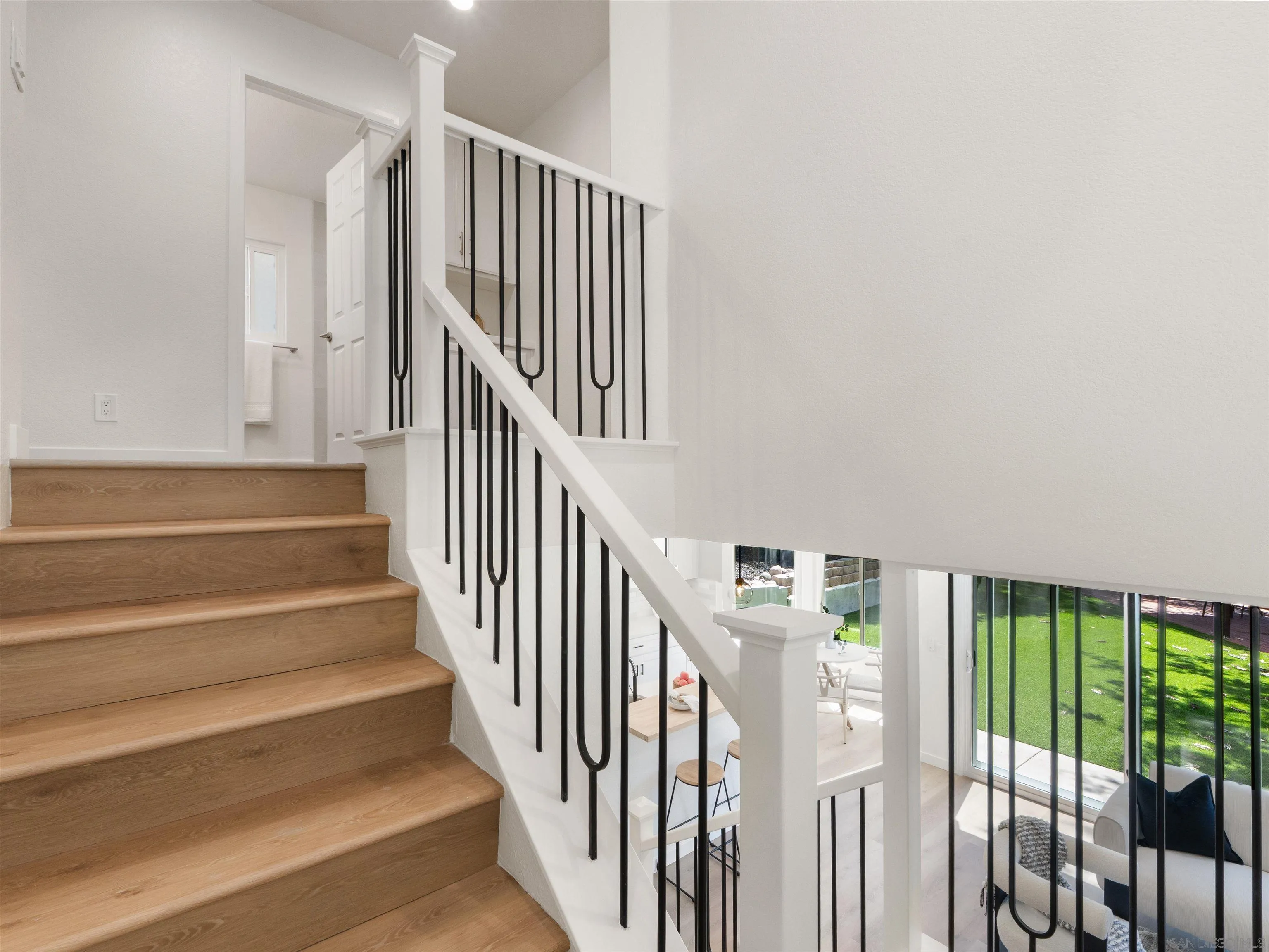 Welcome to this beautifully upgraded gated home in the highly sought-after Fire Mountain neighborhood of Oceanside, where coastal lifestyle meets everyday comfort. This light-filled 3-bedroom, 2-bath residence features an open and inviting layout with thoughtfully updated finishes throughout. The refreshed kitchen showcases quartz countertops, stainless steel appliances, and a newly installed kitchen bar, offering both functionality and a perfect space for casual dining or entertaining. The kitchen flows seamlessly into the living and dining areas, where a newly added fireplace creates a warm focal point. Updated recessed lighting and fixtures enhance the home’s bright and airy feel. Recent improvements include luxury vinyl plank flooring, fresh interior and exterior paint, updated bathrooms with decorative tiles, modern vanities and lighting, and stylish design touches such as a custom feature wall in the primary bedroom and contemporary metal stair railings. Step outside to a spacious and private backyard designed for easy living, featuring new turf, an electric gate for added privacy, two storage sheds, and an elevated deck with pleasant views—perfect for relaxing or entertaining. Ideally located on a generous lot just approximately 1.8 miles from the Pacific Ocean, and within close proximity to local schools, parks, and everyday amenities, this home offers both convenience and coastal charm. Don’t miss this opportunity to own a move-in ready home with meaningful upgrades in one of Oceanside’s most desirable communities.