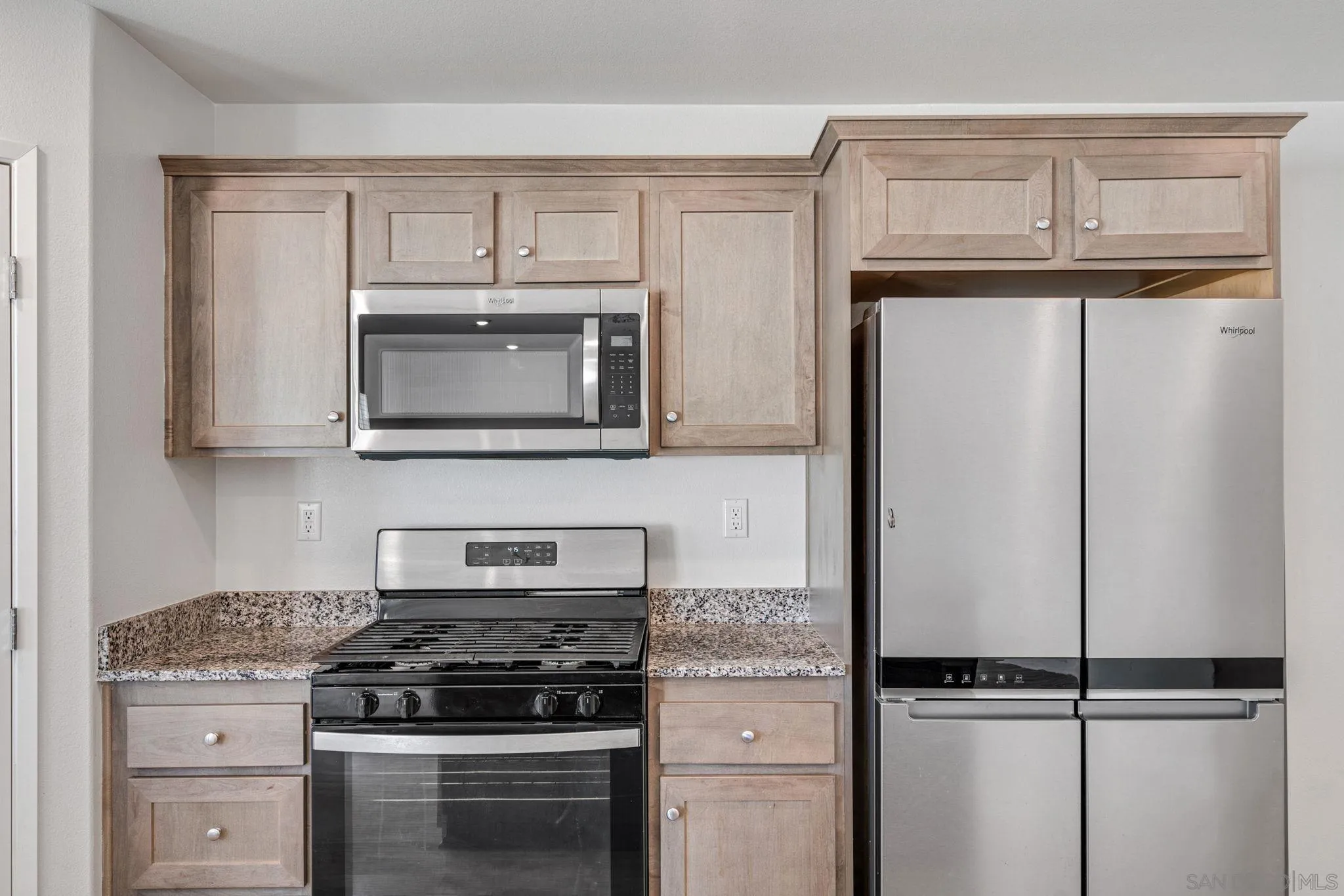 This turn key, move in ready Winchester home includes a washer, dryer, refrigerator, and paid off solar, offering immediate value and energy efficiency from day one! Ideally situated directly across the street from a community park, this home offers both convenience and a desirable lifestyle setting.From the moment you arrive, you’ll be impressed by the stunning front yard landscaping and inviting curb appeal. Inside, the open concept layout showcases a spacious Great Room and dining area that seamlessly connect to a stylish island kitchen. The kitchen is a true centerpiece, featuring Valle Nevado granite countertops, a breakfast bar, built in stainless steel appliances, a walk in pantry, and elegant Alto stained maple shaker style cabinetry. Recessed lighting throughout enhances the bright and modern feel, while durable vinyl flooring flows through the main living areas, with plush carpet in bedrooms and closets. The downstairs also includes a convenient powder bathroom. Upstairs, you’ll find a versatile loft, a dedicated laundry room, and four generously sized bedrooms, including a spacious primary suite with an ensuite bathroom and walk in closet. Additional highlights include a direct access two car garage pre plumbed for an electric vehicle and Smart Home features for modern convenience. Step outside to a huge backyard, perfect for entertaining, relaxing, or creating your dream outdoor space. Both front and back yards are fully landscaped and irrigated, offering beauty and ease of maintenance.