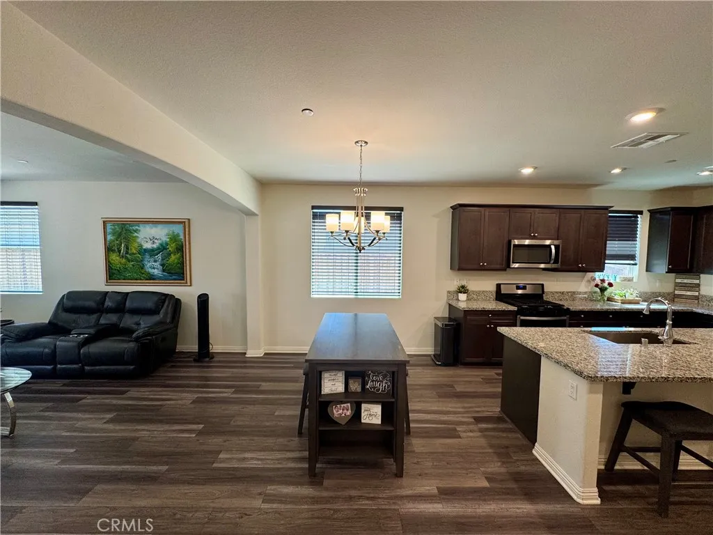 Back on the market and ready for its next owner! This single story home is tucked away on a quiet cul de sac in Hesperia and was built in 2018. Offering 4 bedrooms, 2 bathrooms, and approximately 1,835 square feet of living space, this home features vinyl wood flooring throughout the main living areas, dimmer switches on the lighting, and a bright, open concept layout ideal for modern living. The kitchen provides generous counter space, ample cabinetry, a garbage disposal, and opens seamlessly to the family room, making it perfect for everyday living and entertaining. The private primary suite offers a comfortable retreat, while the remaining bedrooms are well sized and versatile. The owner also left wiring in place for potential surround sound speakers in the family room, adding to the homes entertainment appeal. Additional highlights include an attached 2 car garage, alarm system, tile roof, and attractive exterior stone faade accents. Upgrades include a top of the line Rheem tankless water heater, whole house fan, and a Chamberlain garage door opener with smartphone compatibility, all included with the home. The backyard features an extra large concrete patio, ideal for creating your own California room, along with a spacious yard offering potential RV access. The property also includes a sprinkler system and sits on an approximately 6,882 square foot lot with low maintenance desert landscaping in the front yard. Conveniently located near shopping, dining, and community amenities, this home offers comfort, functionality, and value making it a standout compared to newer c