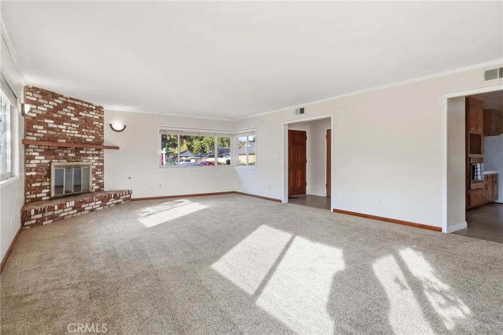 MID-CENTURY RANCH "HIGHLANDS" Welcome to this spacious single-story home offering timeless curb appeal, classic brick accents, and a warm mid-century feel. Set behind mature landscaping and a brick-lined walkway, this home blends original character with a highly functional layout designed for comfort and everyday living. Featuring approximately 2,618 sq ft, this home offers 5 bedrooms + 3.5 bathrooms + office with a desirable split-bedroom floor planideal for families, guests, or multi-generational living. Two bedrooms are located on one side of the home and two on the other, each connected by Jack-and-Jill bathrooms, creating smart separation while keeping the layout practical and connected. The private primary suite includes an en-suite bathroom and sliding door to patio. At the heart of the home, enjoy a generous living room filled with natural light and anchored by a classic brick fireplace, perfect for gatherings or relaxing nights in. The kitchen offers abundant of custom wood cabinetry, clean counters, built-in shelving and a large oven and cooktop, making it a true central hub for entertaining and everyday meals. French doors and wide windows enhance the indoor/outdoor flow and connect beautifully to the backyard. Additional highlights include a long driveway with excellent parking flexibility and potential Jr. ADU opportunity (buyer to verify). With space, versatility, and classic charm, this is a rare opportunity to own a home that offers both lifestyle and long-term value.