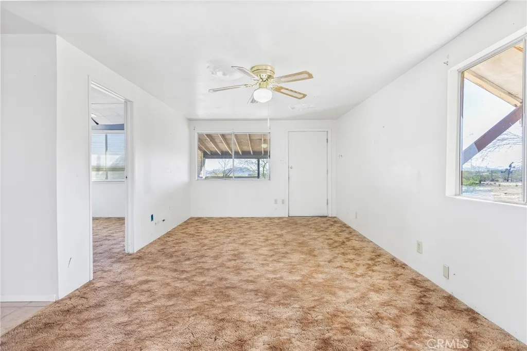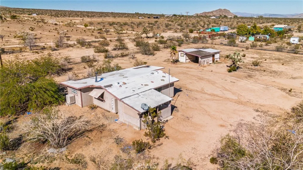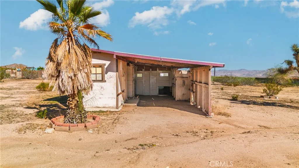Endless potential on 2.5 acres of flat, usable land! Welcome to 55525 Ornelas Ln in Landers! This 1-bedroom, 1-bath home offers approximately 1,085 sq. ft. of living space (965 sq. ft. per assessor) on a spacious 2.5-acre lot. Features include a large bonus room that could be converted into additional bedrooms, a cozy family room, small kitchen with dining area, enclosed porch, and covered front porch. Detached covered carport includes a small office and storage room. All-electric home with public waterno propane needed. Home needs some updating and repairs but offers great potential as a desert getaway or full-time residence. Zoned HV/SD-RES, allowing for single-family use and potential accessory structures. Conveniently located near Joshua Tree and Yucca Valley. Buyer and buyers agent to verify all information, including permits, additions, square footage, zoning, and property use to satisfy themselves.