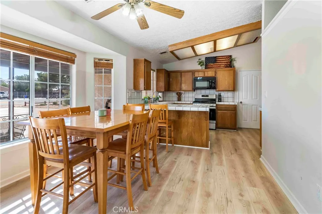 Wow! What a deal! Welcome to this beautifully upgraded, move-in ready single story home located in a quiet, well established neighborhood in Apple Valley. This spacious home offers 3 bedrooms, 2 bathrooms, and 1756 sq. ft. of living space, perfect for comfortable everyday living. Enjoy all new flooring throughout the entire home, fresh interior paint, and a brand new roof for peace of mind. Huge bonus is the energy efficient solar system to eliminate your monthly Edison bill. The inviting kitchen features ample cabinetry, a pantry, tile countertops, a breakfast bar, and a cozy dining nook. The family room includes a charming brick fireplace and opens to the dining area with sliding glass doors that lead to a covered patio, ideal for relaxing or entertaining. The large primary suite offers a double sink vanity, a soaking tub, separate shower, and a walk in closet. The home also features an indoor laundry room with a gas dryer hookup, an attached 2 car garage, RV parking, a fully fenced back yard, and a storage shed. Conveniently located near shopping centers, schools, parks, and restaurants. This is a must see home that offers comfort, convenience and style in one turnkey package now offered at an unbeatable discount!