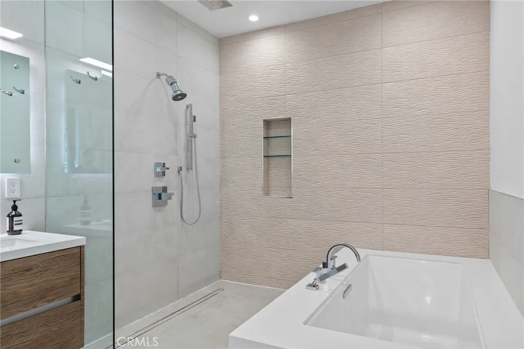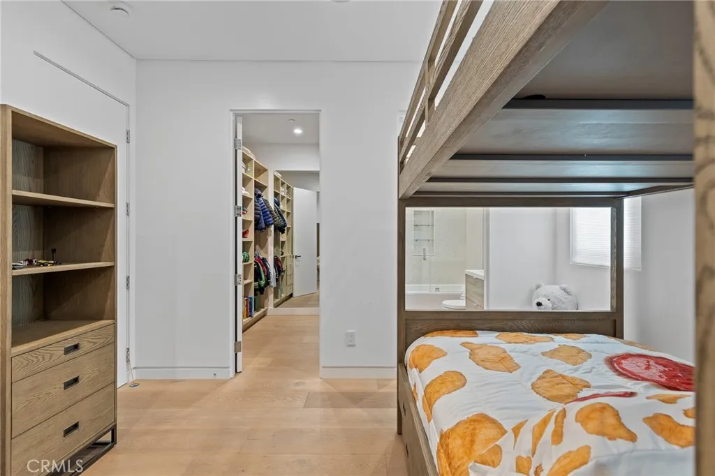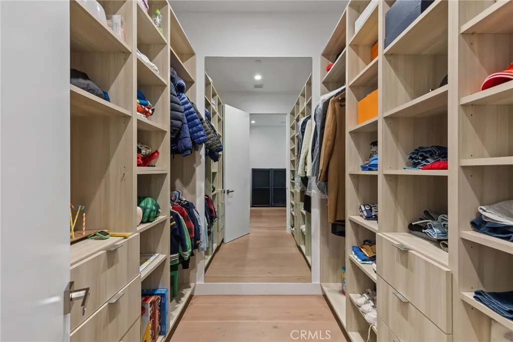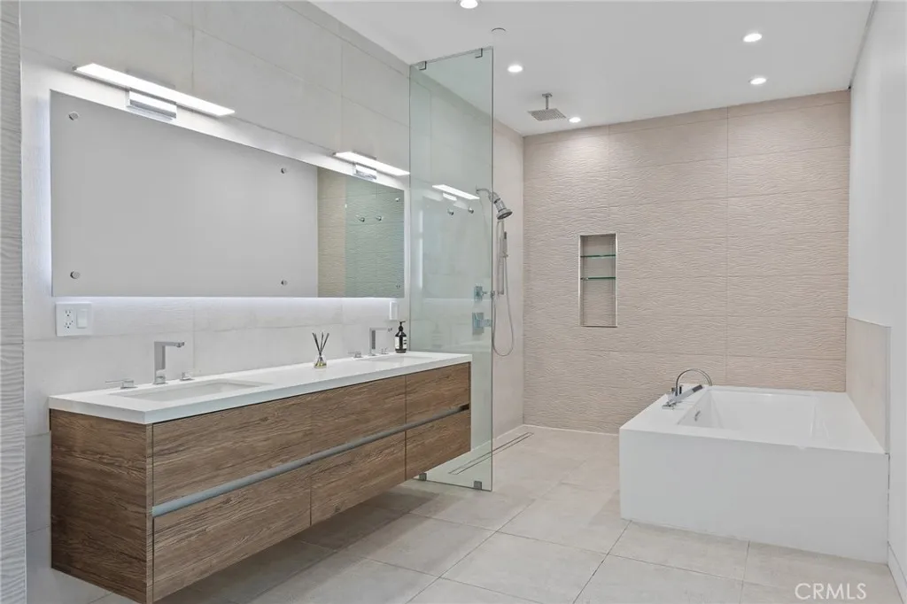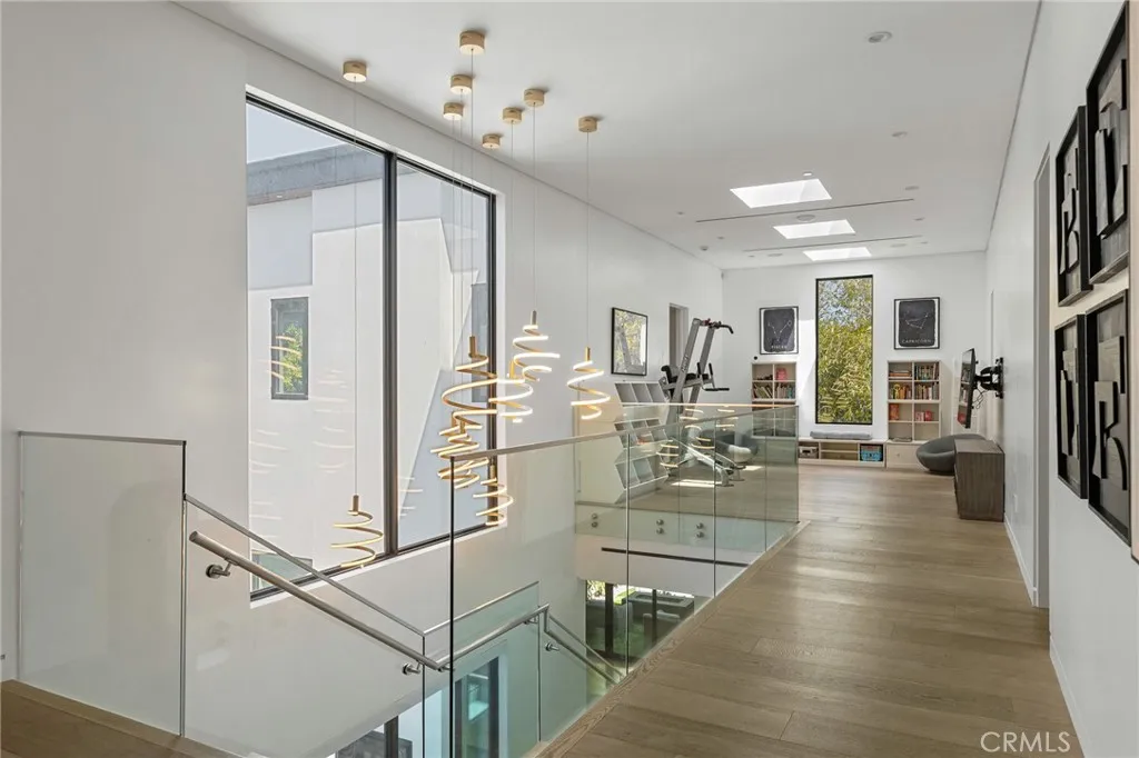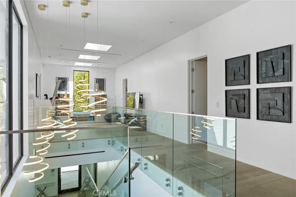 Gated and set behind a long private driveway, this custom contemporary estate offers exceptional privacy and refined modern living on one of the most desirable streets south of Ventura Boulevard. Surrounded by mature bamboo and ficus trees, the home provides a serene, resort-like setting just moments from Sherman Oaks best shopping and dining. Soaring ceilings and walls of glass fill the interiors with natural light, seamlessly connecting the open-concept living, dining, and chefs kitchen. The kitchen features premium Bosch and Viking appliances, custom cabinetry, a walk-in pantry, and a striking Calacatta marble island, complemented by a sleek glass-enclosed wine display and double-sided fireplace. Expansive sliding doors open to an entertainers backyard with a dramatic negative-edge pool, spa, and built-in BBQ, ideal for indoor-outdoor living. The main level includes a private bedroom suite perfect for guests or an office. Upstairs offers a family lounge, four en-suite bedrooms with walk-in closets, a spacious primary suite with fireplace and spa-style bath, and an upstairs laundry room. Built in 2018 with parking for 10+ cars, and just a short walk to Whole Foods, restaurants, the Sherman Oaks Galleria, and minutes to Buckley and Campbell Hall.