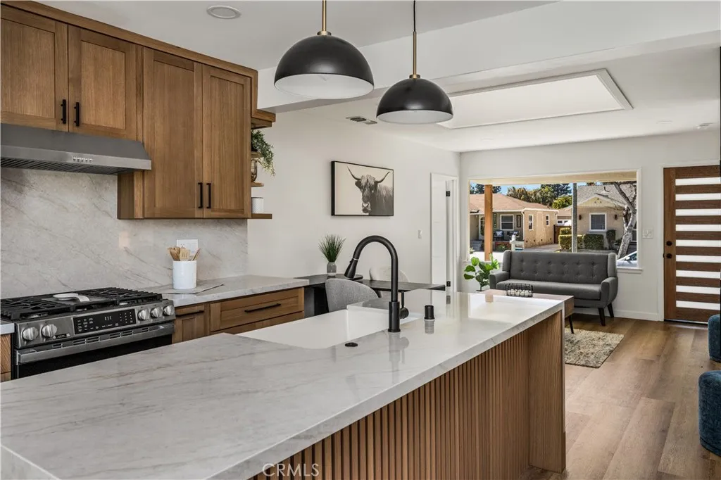 Welcome to 4454 Canehill, located in Lakewood. This home has been remodeled, and the layout has been redesigned to create an inviting primary suite. The living room and kitchen are open concept, and a favorite part of this space is the vast skylight. The kitchen has French doors that open to the yard, creating the perfect indoor-outdoor dining space to enjoy Southern California weather all year long. One side of the home has two bedrooms, a full bathroom, and the laundry space. On the opposite side of the house is the primary suite, which features a walk-in closet. The backyard is spacious with grass, an outdoor seating area, a long driveway, and a finished two-car garage. The remodel includes exterior paint, landscaping, interior paint, flooring, lighting, an electric fireplace, a laundry inside, a remodeled kitchen, a primary suite, a spacious yard, and a front porch The list goes on, but it's not home till there is you. See you soon at 4454 Canehill!