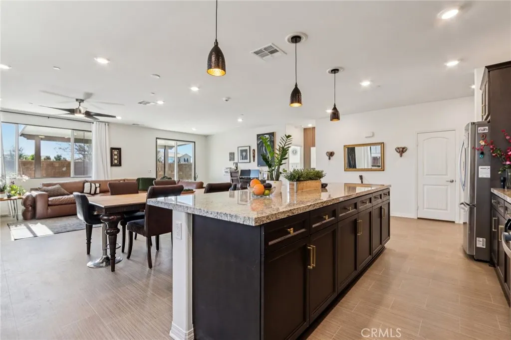 Immaculately maintained and like new, this beautiful home offers a bright, open layout with excellent natural light and mountain views. The spacious living, dining, and kitchen areas flow seamlessly, creating an ideal space for everyday living and entertaining. The kitchen is a standout, featuring granite countertops, stainless steel appliances, richly hued espresso cabinetry, and a large center island with bar seating. The home offers three generously sized bedrooms and two bathrooms, including a relaxing primary suite with a walk-in closet and an en suite bathroom complete with a dual-sink vanity. An attached two-car garage adds everyday convenience and storage. Go outside through the sliding glass door to the covered patio, where you can unwind and enjoy mountain views and a low-maintenance backyard with artificial turfperfect for relaxing or entertaining. Located within the desirable Heritage Lakes community, residents enjoy a low HOA fee and access to an impressive array of amenities, including two pools, kiddie pool, barbecue and picnic areas, playground, and dog park. Ideally situated near schools, shopping centers, and dining options, this move-in-ready home is ready for its new owners.