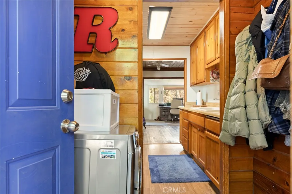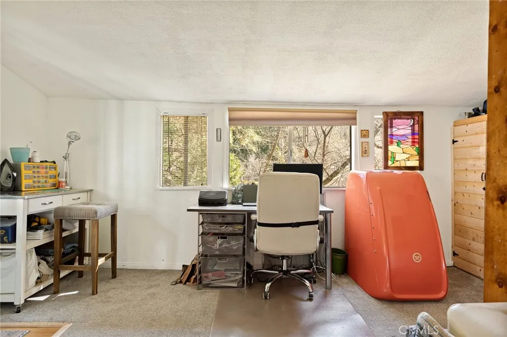 $15,000 PRICE REDUCTION! Welcome to the Crestline community! Close to Lake Gregory, which offers activities such as fishing, summer water fun, and its own beach! Nestled on a quiet street in Crestline, close enough to shopping, yet surrounded by privacy, discover your own slice of respite in the mountains. Built in 1928, the current owner has put much love into this sweet home, including revamping the bathroom, installing a new foundation in the build-up, and adding custom closets, all while keeping the original feel of a mountain cottage. THE OPEN FEELING OF 540 SQ FT OF LIVING SPACE, THE EXTENSION OF A HOME OFFICE, OR ANOTHER POSSIBLE GUEST ROOM PROVIDES AN ADDITIONAL 128 SQ FT, NOT INCLUDED IN THE ORIGINAL SQUARE FOOTAGE: two EASILY accessible flat parking spaces and minimal steps to the house. The side and backyard provide plenty of room for outdoor gatherings, with the area safely enclosed for dogs to run. A NEW retaining wall offers peace of mind during the rainy and snow season, as does knowing that Dart Canyon is plowed regularly! Whether a first-time homebuyer, looking for a second home as a respite from city life, or a possible short-term rental, this quaint open living environment is to be enjoyed for years to come!