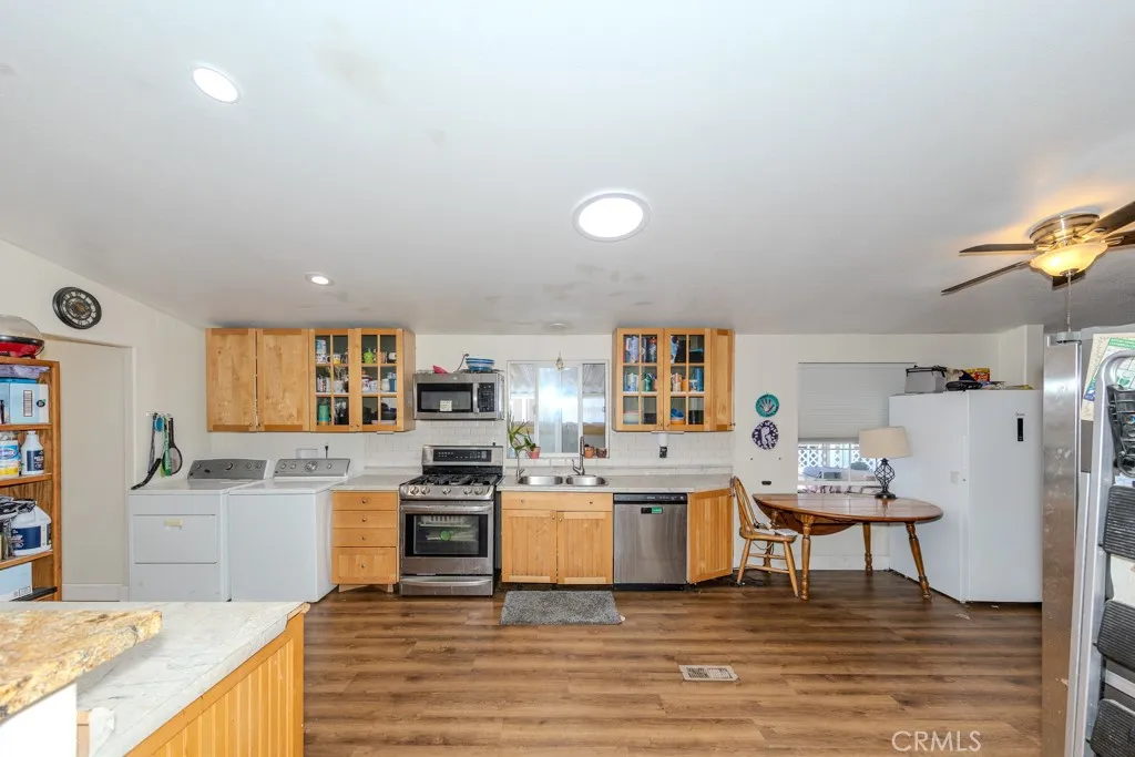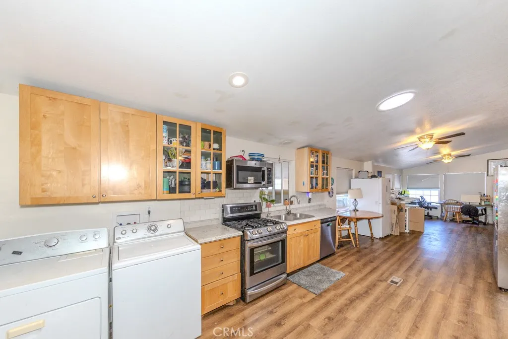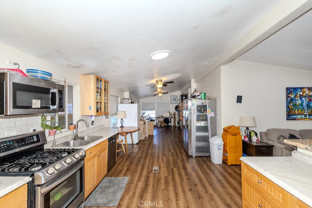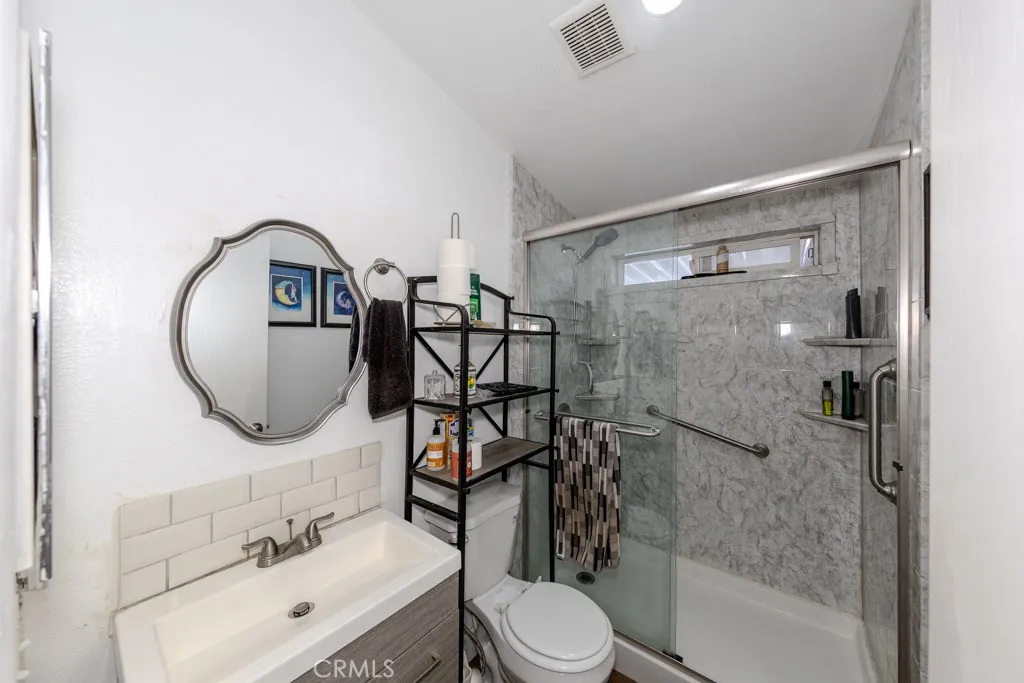 Set in Fountain Valley Estates at 9320 Talbert Ave in Fountain Valley, this updated 3-bedroom, 3-bath manufactured home with a bonus room offers 1,344 sq ft of single-level living. Built in 1996 and extensively improved, the home features a newer roof, interior and exterior paint, updated plumbing and electrical, and multiple interior upgrades completed between 2021 and 2024. The open concept floor plan connects the living area, dining space, and kitchen. The kitchen includes Formica counters, a new backsplash, wood shelving, and stainless steel appliances including a 2024 refrigerator, gas range, oven, microwave, dishwasher, and garbage disposal. An osmosis water system is connected to the kitchen sink and refrigerator. New lighting, switches, and ceiling fans were added throughout the home along with new faucets, baseboards, and hardware. The primary bedroom includes a custom wall unit in the closet and an attached bonus room suitable for a private office or seating area. The en suite bath features a remodeled vanity, mirrors, and a walk-in shower. All three bathrooms were updated with new showers, fixtures, and lighting. Additional improvements include new flooring and subfloors, two solar tubes for added natural light, new plumbing for the washer and dryer, and motion sensor lighting at the carport. This home includes a two-car carport and a storage shed. The property is connected to public utilities including gas, water, sewer, and electricity with central forced-air heating. Located near the clubhouse, the home enjoys access to community amenities at Fountain Valley E