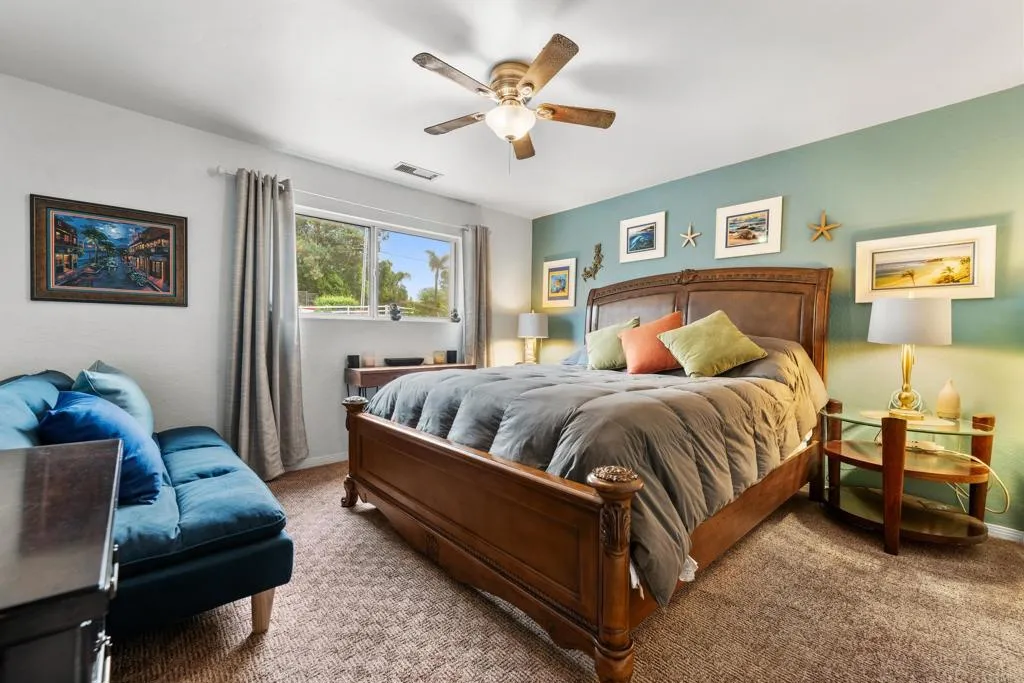 Exceptional 1.13-acre view property offering privacy, space, and resort-style living in the heart of Fallbrook. This 2,153 sq ft home features 3 bedrooms, 2.5 bathrooms, and a dedicated downstairs office. Bamboo flooring, recessed lighting, and a wood-burning fireplace in the family room create a warm and inviting interior. The kitchen is designed for both function and style with black quartz waterfall countertops, lighted soft-close cabinetry, and matching G.E. Caf appliances including a French door refrigerator, double oven, 6-burner stove, microwave, and dishwasher. Built-in coffee bar, whole-house water system, and filtered water at the kitchen sink add to the homes thoughtful upgrades. Outdoor amenities include upper and lower entertaining areas, a 3-level pool, built-in BBQ, and fire pit. The expansive lot provides space for a potential ADU and room for RVs, boats, and recreational toys. Additional features include a permitted 10x10 shed, chicken coop, raised garden beds, and mature fruit trees (fig, apricot, avocado, orange, lemon, plum, peach, and blood orange). 30 owned solar panels, a tankless water heater, unfinished basement for storage, and a 45" culvert located behind the property along Olive Hill Rd complete the offering. A rare combination of usable acreage, privacy, and flexibility just minutes from town.