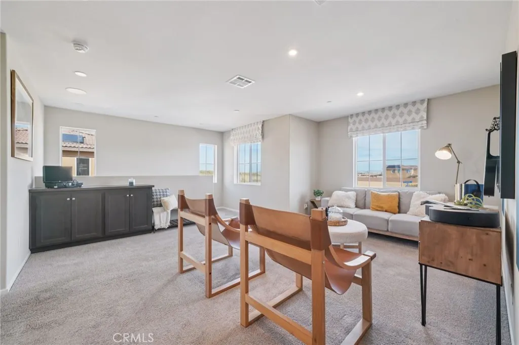 Never lived in and loaded with upgrades -- this is the actual FORMER MODEL HOME! ALL FURNISHINGS AND APPLIANCES ARE INCLUDED, making this an incredible turnkey opportunity!! This popular floorplan offering 1,874 SqFt of living space with 4 bedrooms (1 DOWN!) and 3 bathrooms welcomes you with a charming front porch and a long, elegant entry that opens into a spacious, open-concept Great Room and gourmet kitchen. Designed for both comfort and entertaining, the kitchen features stylish cabinetry, granite countertops, brand-new stainless steel appliances, a pantry, and a generous eat-in dining area. The main floor offers a full bedroom and bathroom -- perfect for guests, a home office, or multi-generational living. Upstairs, an oversized loft provides flexible space for a media room, study area, or lounge. Additional secondary bedrooms are generously sized and share a bathroom with dual sinks for added convenience. The primary suite is a true retreat, offering expansive space, an oversized walk-in closet, and a spa-inspired bath with dual sinks and a large walk-in shower. Outside, the backyard offers ample space that has been meticulously landscaped complete with artificial grass. Additional features include Americas Smart Home Technology for convenient home automation, LED recessed lighting, a tankless water heater, and more. Move-in ready, beautifully appointed, and fully furnished -- this home delivers comfort, flexibility, and exceptional value all in one.