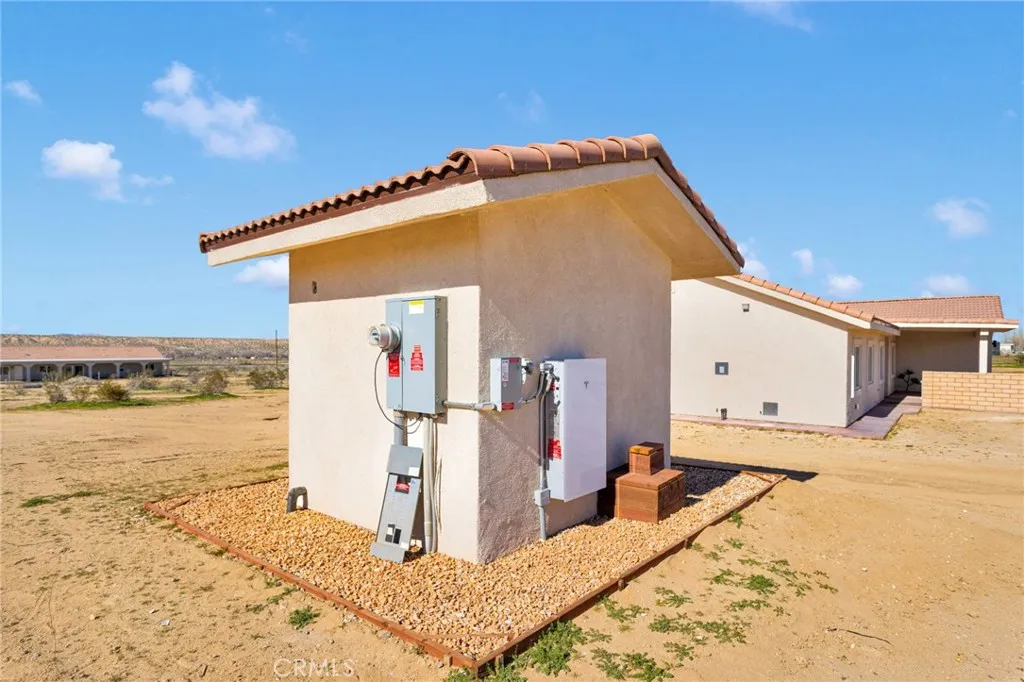 5 Bedrooms | 3 Bathrooms | 2 Primary Suites Fully fenced and powered by its own private well no water meter, no usage fees (just power to pump). Designed for efficiency with fully paid solar, Tesla Powerwall 3 batteries, and outage protection built for near off-grid living while still connected to Edison. Enjoy stunning sunsets from the front patio or full-length back patio. Inside youll find porcelain tile throughout, quartz counters, solid-core custom doors, Kohler fixtures, insulated garages, and room-by-room climate control. The chefs kitchen features a large island, induction range, slide-out cabinetry, and a beautiful glass-door pantry. ~40 irrigated mesquite trees complete this one-of-a-kind desert property. Located in the highly sought-after Oro Grande School District, including Riverside Prep (K12). Modern efficiency. Desert serenity. Move-in ready.