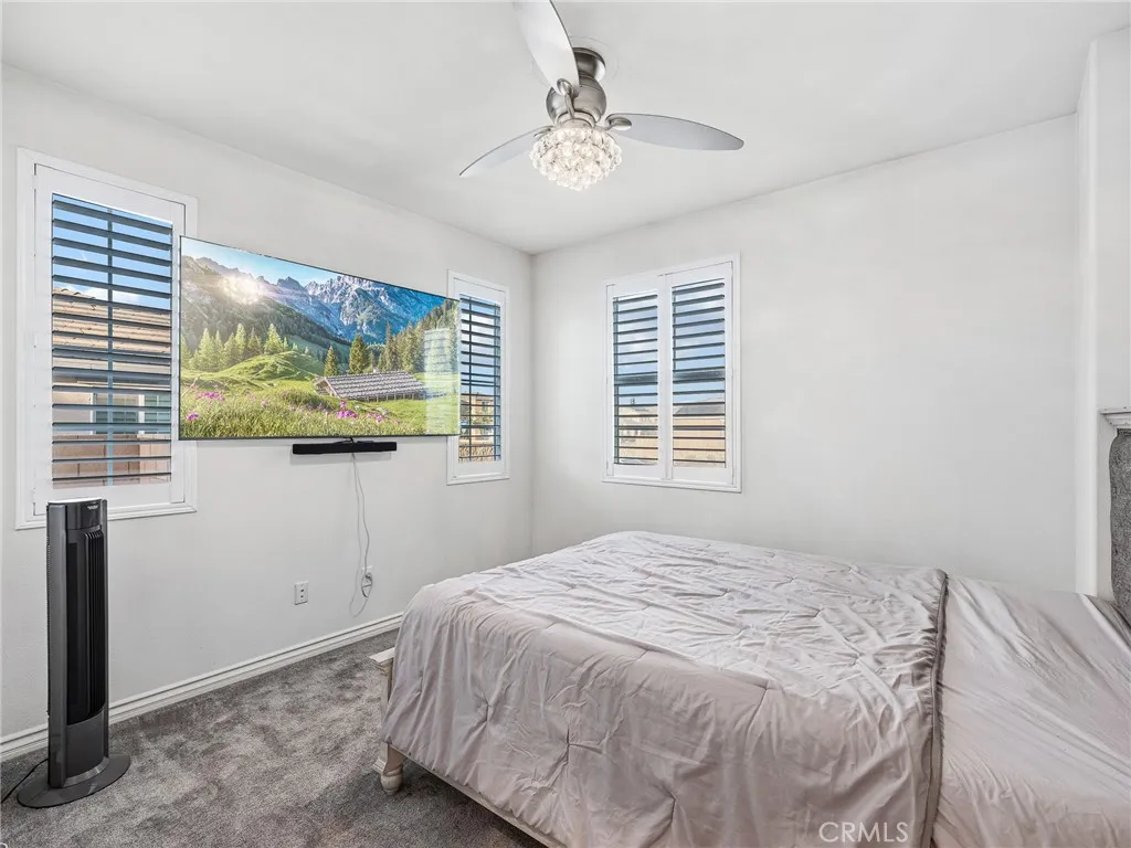This nearly New two-story home combines modern luxury with smart living and energy efficiency. Featuring five bedrooms and 3 bathrooms, it comes partially furnished with TVs and sound bars in every bedroom, plus a washer, dryer, and smart refrigerator ALL INCLUDED!!! The home boasts FULLY PAID solar panels, a soft water system, and a tankless water heater for long term savings and comfort. Elegant plantation shutters on every window, a convenient upstairs laundry room, and loft area for an in-home office space or the coolest hangout on the block. Located near a park, this move-in-ready home offers the perfect blend of style, technology, and convenience.