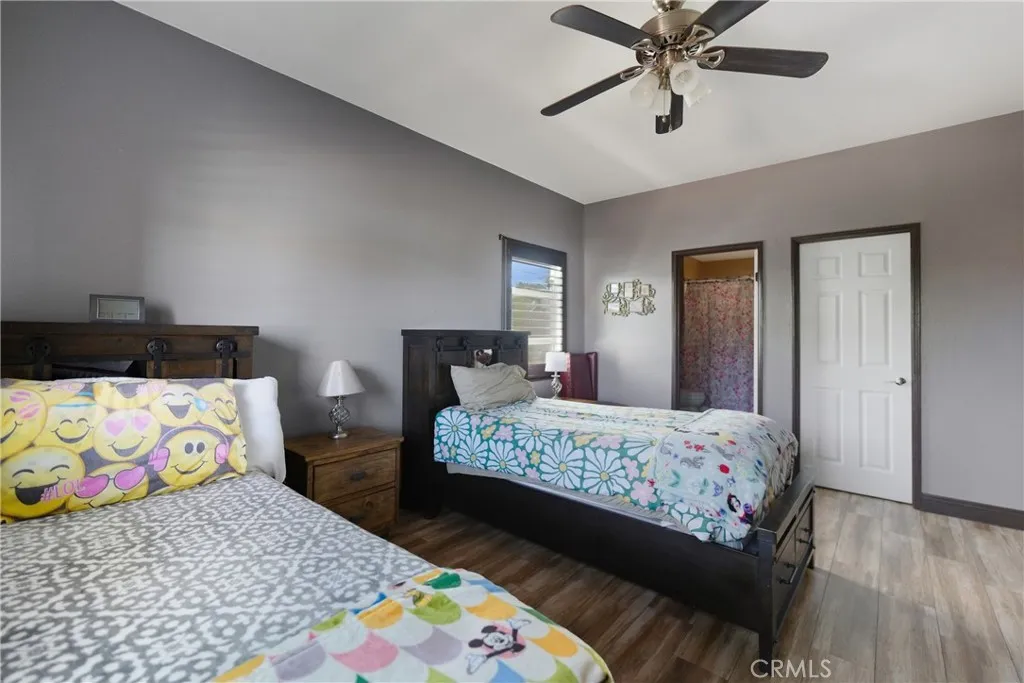 Welcome to this beautiful Mediterranean-style home at 11970 Walnut St. in the heart of Bloomington. Built in 2004, this spacious 2,738 sq. ft. residence sits on a nearly half-acre lot and offers a rare combination of mountain views, modern comfort, and expansive outdoor space. With 5 bedrooms and 4 full bathrooms, the thoughtfully designed layout is ideal for multigenerational living. The main level features a bright living room filled with natural light, a private primary suite with granite countertops, two additional bedrooms with a shared dual-sink bathroom, and an indoor laundry room with direct access to the attached two-car garage. Upstairs offers an open-concept kitchen with granite countertops and abundant cabinetry that flows into a spacious family and dining area with tile flooringperfect for everyday living and entertaining. Two oversized upstairs bedrooms each include their own private full bathroom, providing excellent separation for next-gen living arrangements. Step outside to a massive backyard with a large covered patio and terraced access to an elevated portion of the lot with sweeping mountain and city viewsoffering potential for an ADU, outdoor retreat, or additional entertainment space. The home also features solar, helping improve energy efficiency and reduce utility costs. Additional highlights include rear gated access, an extended driveway, and RV parking. Dont miss this unique opportunity to own a spacious home with incredible potentialschedule your private showing today.