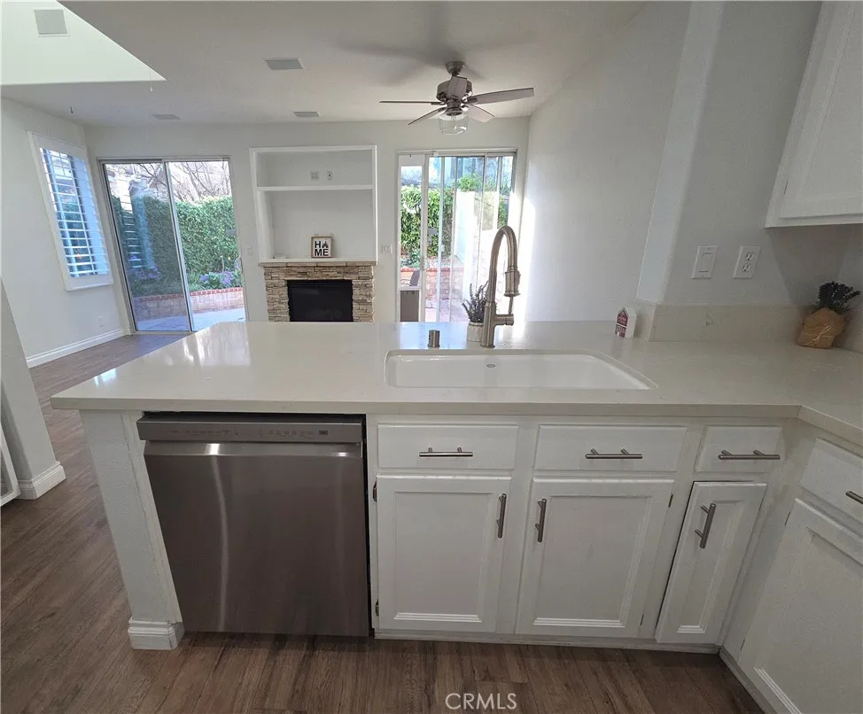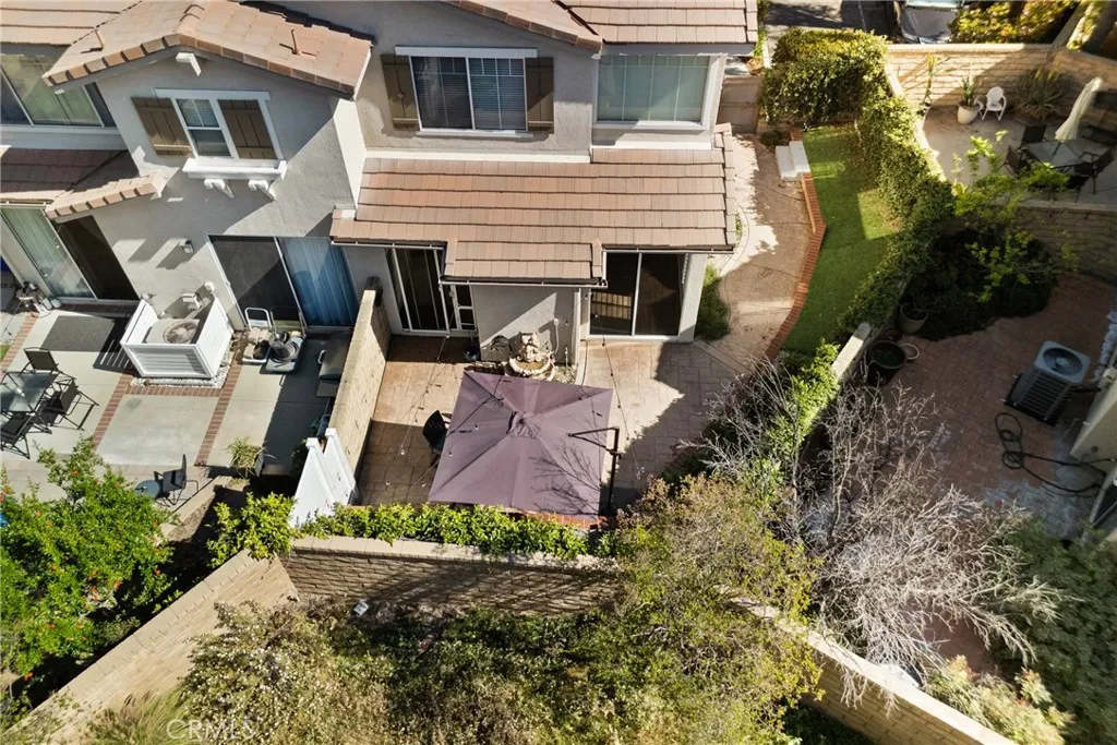 Welcome to this much sought after townhouse complex in Valencia. A lovely end unit 2 bedroom 2.5 bath in the desirable Cheyanne community. This Wonderful floor plan has a light and bright living room with stone fireplace for cozy gatherings. The kitchen over looks the quartz breakfast bar for easy entertaining. Ample counter space and cabinets galore ! Newer dishwasher and farm sink for swift clean up !The downstairs living area has newer laminate floors for easy care and a half bath for guests. Upstairs you'll find The primary suite has plantations shutters, ceiling fan and appealing bath/dressing area. A walk in closet is an added bonus! The en suite second bedroom with full bathroom , ceiling fan and plenty of light. The backyard as Impressive space...lots of greenery and big patio area ~ side are for pets with well drain turf . 2 car attached direct access garage ~ NEW AC unit and garage door opener and new Nest thermostat. Lower HOA dues, no mello roos and a fantastic community amenities including pool, spa, picnic area, tot lot and security patrol Conveniently located near top rated schools, parks and Bridgeport market place for shopping. Don't miss the fantastic opportunity to call Valencia Home !