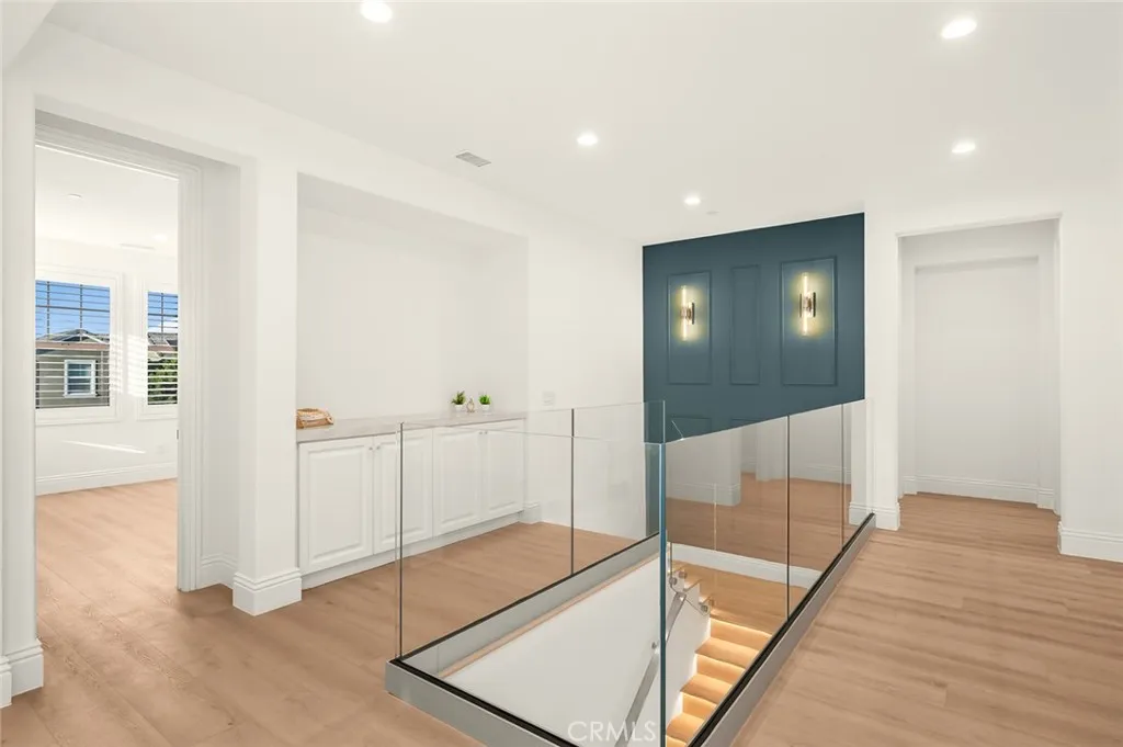 Fully reimagined, design-forward home just under 4,000 sq ft on one of the most desirable streets in Tustin Legacy. This turnkey, model-like residence features a dramatic skylit entry with soaring ceilings and an open-concept layout filled with natural light. It is upgraded throughout with wide-plank luxury flooring, designer lighting, and modern finishes. The chefs kitchen showcases Taj Mahal countertops with waterfall edges, custom cabinetry, and premium stainless steel Kitchen-Aid appliances. A custom double-door system creates seamless indoor-outdoor flow, ideal for entertaining. Highlights include a custom wine & tequila room and a striking LED-lit staircase with glass railings. The primary suite offers a spa-inspired bath and a large walk-in closet. Secondary bedrooms provide flexibility for guests or office use. Private outdoor space designed for entertaining and relaxation. Located in the highly sought-after Tustin Legacy community near top-rated schools, parks, pickleball courts, shopping, and dining. Rare opportunity on a premier street.