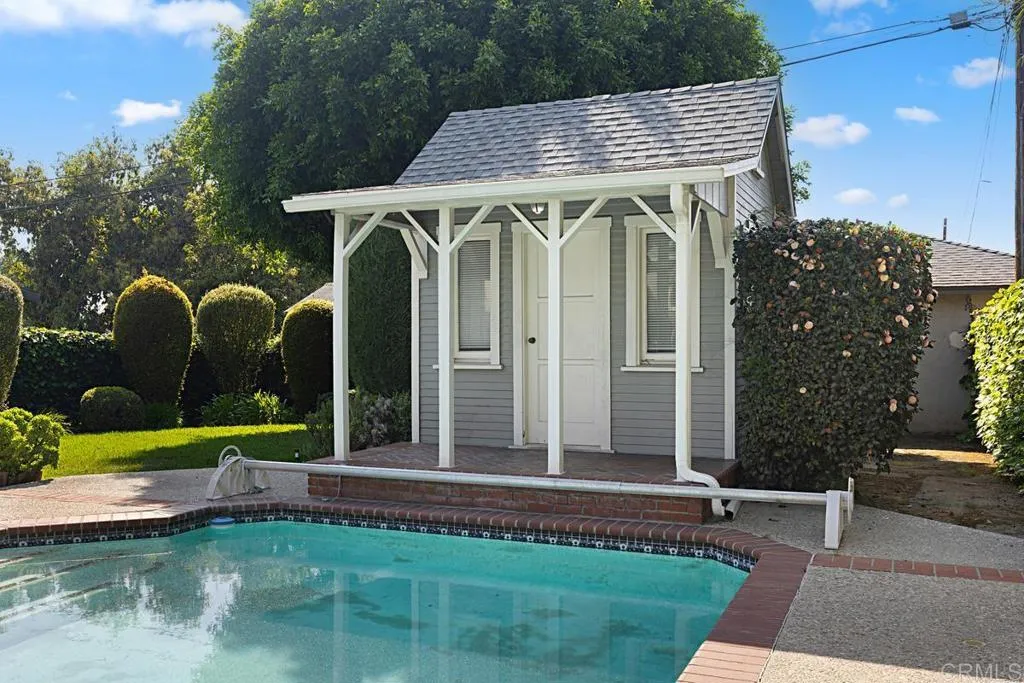 Welcome to this beautifully remodeled residence in the heart of West Whittier, where timeless charm meets thoughtful modern upgrades. Situated on an expansive 7,670 square foot lot, this 2-bedroom, 1-bath home offers approximately 1,090 square feet of well-designed living space. Walking distance to Palm Park. The interior showcases a bright, inviting floor plan enhanced by newly refinished hardwood floors, fresh designer paint, and upgraded baseboardscreating a clean, contemporary feel while preserving the homes original character. The renovated kitchen is appointed with brand-new stainless steel appliances, including range, refrigerator, dishwasher, and microwave, complemented by new tile flooring for both style and durability. Additional features include a detached 2-car garage, new window coverings throughout, and no HOA. Year-round comfort is provided by central heating and air conditioning, while the fully owned solar system offers long-term energy efficiency and cost savings. The backyard presents a private, resort-style setting ideal for both entertaining and everyday enjoyment. Highlights include mature landscaping, a pool and spa (pool may require replastering), and a built-in gas BBQ area. A detached cabana/pool house adds valuable flexibility and is well-suited for a home office, gym, or creative studio. A separate storage shed further enhances functionality. This is a well-rounded property offering a rare combination of updates, outdoor amenities, and long-term valueready for immediate enjoyment.