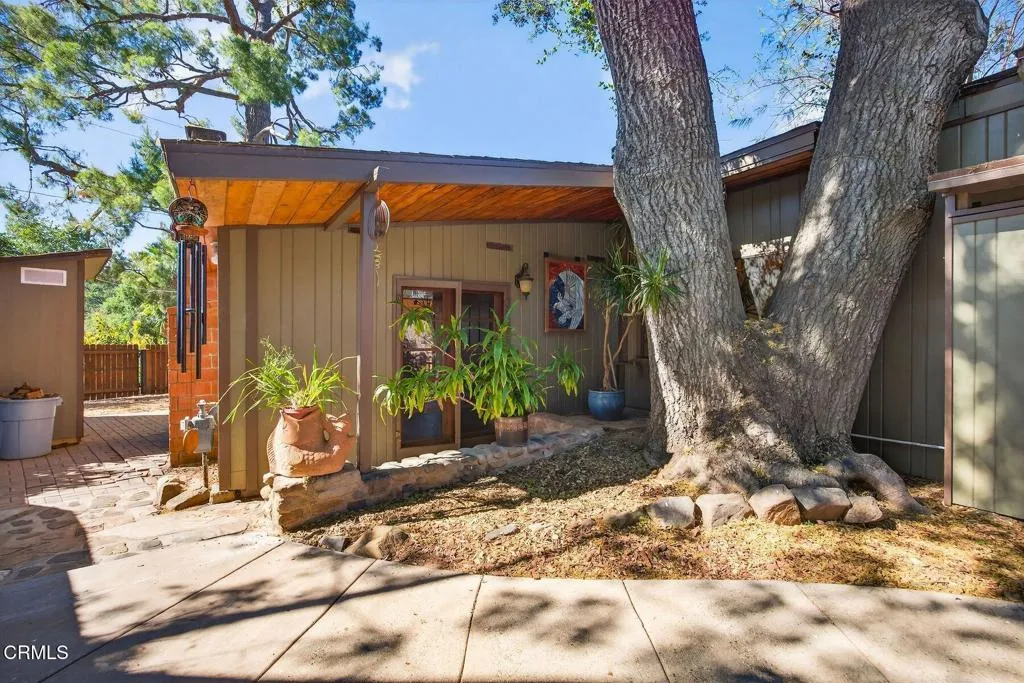 Tucked within the serene landscape of Upper Ojai, 12752 Sisar Road offers a rare private retreat at the quiet end of the road, surrounded by natural beauty and exceptional seclusion. The 2-bedroom, 1-bath home spans approximately 1,601 sq ft and features warm, rustic charm with rich wood interiors, an open, light-filled layout, and a striking stone fireplace as the centerpiece. French doors open to the outdoors, creating a seamless connection to nature, with nearby trails and a year-round stream enhancing the setting. Recent upgrades include a newer roof with fire sprinklers, updated electrical, new HVAC ducting, remodeled kitchen and bath, newer appliances, updated flooring, tankless water heater, and refreshed interior and exterior paint. The landscaped grounds have been thoughtfully improved, and three newly constructed outbuildings--including two finished Tuff Sheds--offer flexible space for office, studio, or storage. Gated entry and upgraded fencing provide added privacy and security. A true Ojai retreat, blending comfort, charm, and a peaceful connection to the outdoors.