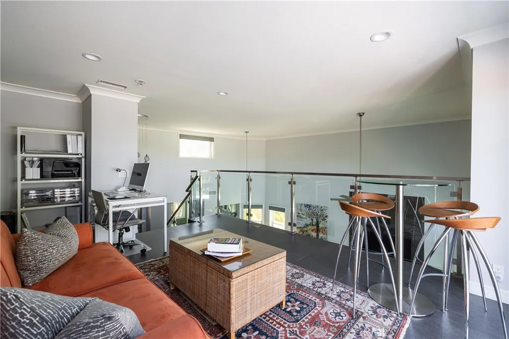 Ultra-chic, high-tech, modern home with tasteful, contemporary upgrades. Sleek Italian laser cut 24 inch porcelain tiles throughout. Tri-folding California doors with horizontal screens open up the entire downstairs offering an indoor-outdoor feel. Glass walls with brushed nickel metal finishes open up the loft boasting picturesque sunset views highlighted by yet another California door. The loft has a private balcony and a closet inset and could easily be a third bedroom. Marble counter tops in the kitchen with top of the line stainless appliances including 30,000 BTU professional Viking gas cooktop and white cabinetry with pull-out shelving. App controlled Hunter Douglas blinds, Porcelanosa fixtures in the primary bath, Lennox AC unit with over 1200 speeds, owned solar with 17 large panels affording continuous monthly savings. The list goes on and on. All this and more on a cul-de-sac street with a perfect yard, top rated schools and close proximity to shopping and Lake Mission Viejo. Even a main floor primary bedroom. The picturesque yard offers multiple seating areas, an elevated gazebo, room for gardening, privacy and a pleasant view. This is the home you have been waiting for. Better hurry on this one.