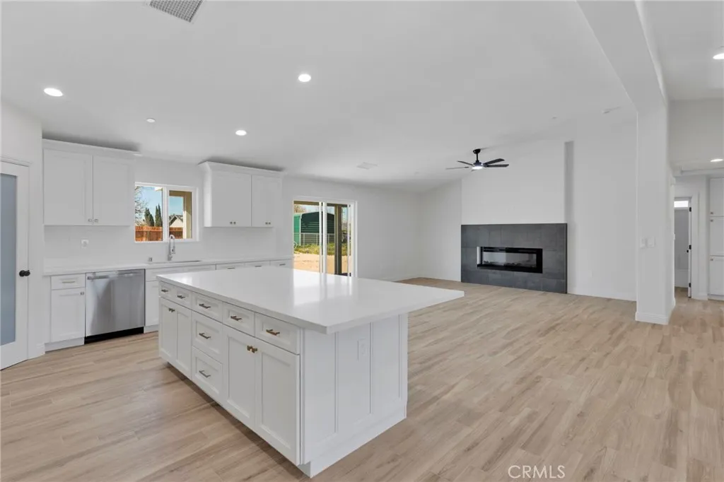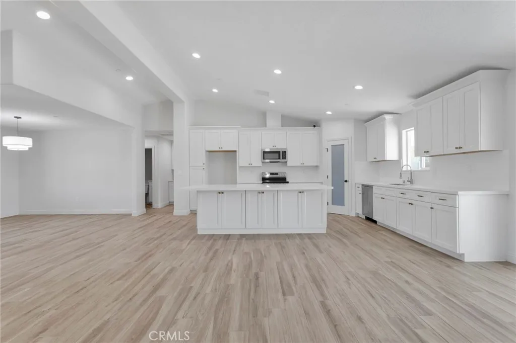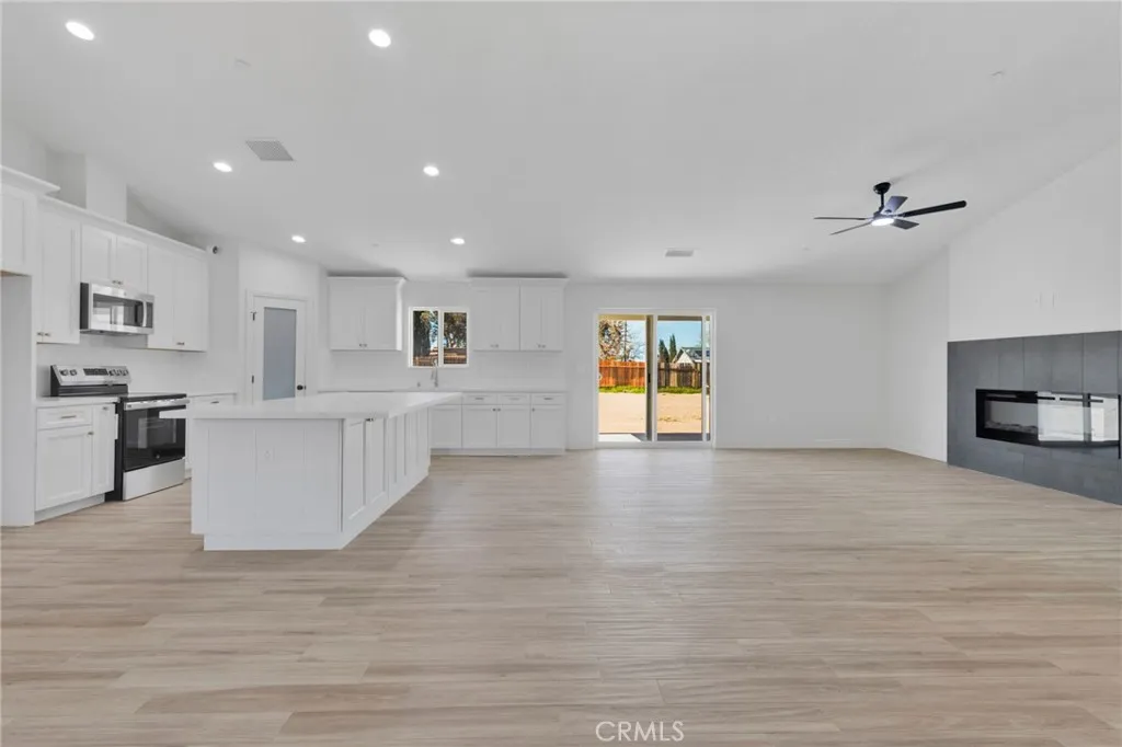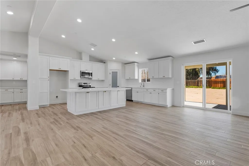 If youve been waiting for that perfect mix of space, style, and brand-new everything, this Hesperia home is about to check all the boxes. Situated on nearly half an acre, this new home offers the ideal blend of modern design, open space, and everyday functionality. From the curb, youll immediately notice the clean lines and thoughtful layout that set this home apart. Step inside to a bright and open floor plan featuring 4 generously sized bedrooms, 2.5 bathrooms, and a 3 car attached garage. Vaulted ceilings create an airy feel throughout the main living areas, while the wood look tile flooring brings both warmth and durability, making it ideal for busy households. The kitchen is designed to be the heart of the home. A large quartz island anchors the space, offering plenty of room for cooking, gathering, and entertaining. Youll also find matching quartz countertops, stainless steel electric appliances, and a spacious walk in pantry that keeps everything organized and easily accessible. Just off the kitchen, a formal dining area provides the perfect setting for hosting dinners or special occasions. The living room offers a comfortable yet stylish space to unwind, highlighted by a sleek electric fireplace that adds both ambiance and convenience. This home is fully electric, built with efficiency and modern living in mind. The primary suite is designed for relaxation, featuring a beautifully crafted tile shower that gives a clean, upscale feel to the space. Outside, the possibilities open up. With just under half an acre, you have room to spread out, park your RV, and enjoy a