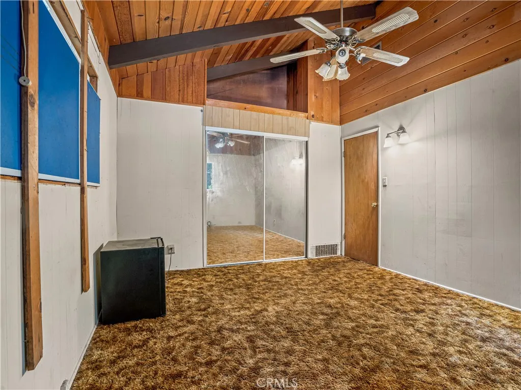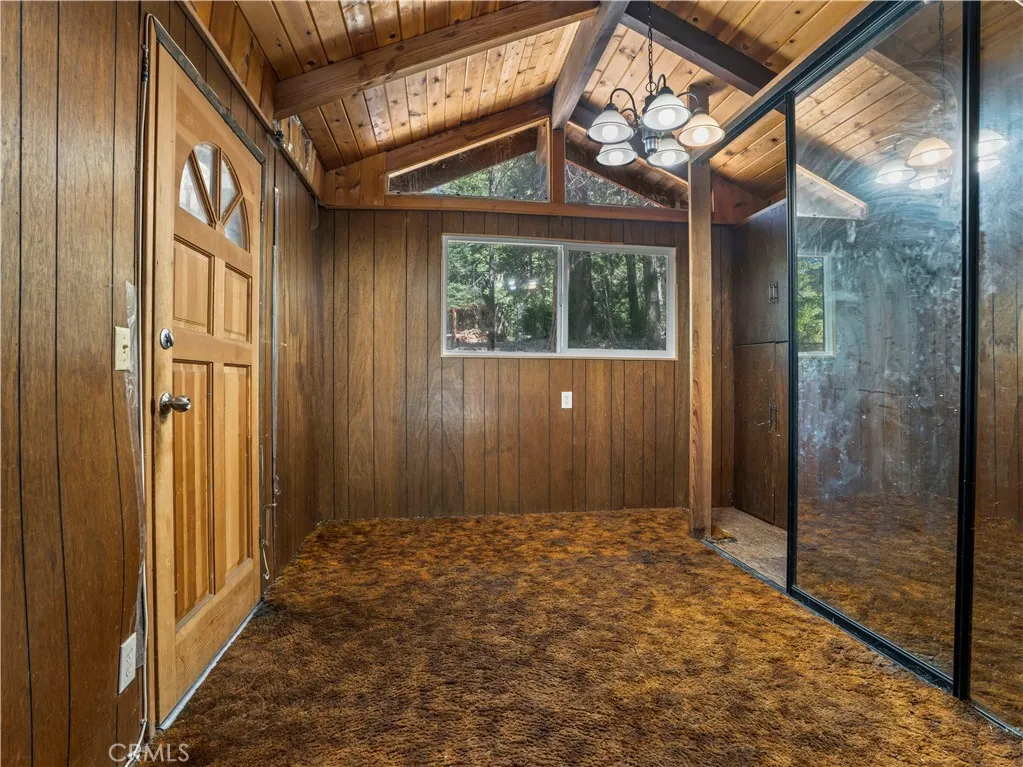 Tucked away in the charming mountain community of Crestline, this cozy 3-bedroom, 1-bath cabin offers the perfect blend of character, privacy, and potential. Situated as the last home on the road, youll enjoy added seclusion and a peaceful setting surrounded by nature. Step out onto the spacious elevated deck and take in gorgeous treetop and mountain views; an ideal spot for morning coffee or relaxing evenings. Just minutes from Lake Gregory, youll have easy access to hiking, fishing, and year-round outdoor recreation. Inside, the living area features vaulted ceilings with beautiful wood beams, creating an open, airy feel while maintaining that cabin charm. The home is warm and inviting throughout, with plenty of opportunity to make it your own. With a little TLC, this property can truly shine as a full-time residence, weekend retreat, or investment opportunity. Dont miss your chance to own a private mountain getaway with stunning views and endless potential. SELLER IS OFFERING A $5,000 credit toward flooring and repairs with a full price offer, adding even more value to this priced to seller property.