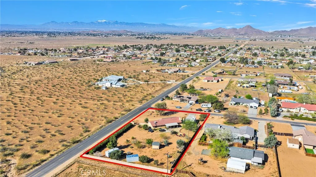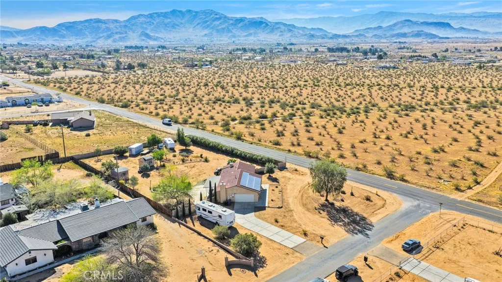 Beautifully updated 3 bedroom, 2 bathroom home situated on over an acre in the highly desirable Sycamore Rocks community of Apple Valley. Set on a spacious corner lot, this property offers wide open space, stunning panoramic mountain views in every direction, along with unforgettable sunset views. Upon entry, youre welcomed into a bright living room filled with natural light. The home offers an updated kitchen complete with a central island for prep, seating, and added functionality. The dining area features a cozy fireplace, creating a warm and inviting space ideal for both everyday dining and entertaining. Step outside and experience the full potential of this expansive property. The backyard is designed for both relaxation and ambiance, complete with a fire pit lounge area and beautifully placed solar lighting throughout that enhances the space. Two storage sheds offer added convenience and versatility for tools, hobbies, or extra storage needs. With over an acre of land, a prime corner location, and a perfect blend of indoor comfort and outdoor living, this property is a rare opportunity in one of Apple Valleys most sought-after communities!