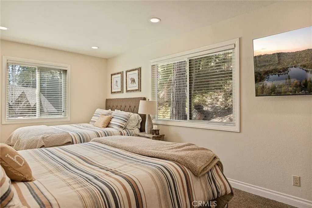 Whispering Pines Lodge. Tucked among towering pines in one of Lake Arrowheads most sought-after neighborhoods, this expansive mountain retreat offers the perfect balance of privacy, scale, and timeless cabin charm. Set on a generous ~17,000 sq ft lot, 813 Brentwood Drive backs directly to the National Forestcreating a rare sense of seclusion with no neighbors to the left or behind you. Here, your backyard becomes an extension of the forest, where wildlife wanders through and nature is your daily backdrop. The main living area is anchored by a cozy fireplace, creating the perfect gathering space for snowy winter evenings or cool summer nights. Large windows frame serene forest views, filling the home with natural light and bringing the outdoors in. The open-concept flow leads seamlessly into the dining area and spacious kitchenideal for hosting family and friends after a day on the lake or at the country club. Retreat to the primary suite where youll find a private sanctuary complete with its own fireplace, generous proportions, and a peaceful ambiance that feels worlds away. Additional bedrooms are well-sized and versatileperfect for guests, a home office, or a growing family. On the lower level, a dedicated game room creates an entirely separate entertaining experienceperfect for hosting, movie nights, a pool table, or a relaxed lounge space. This additional living area enhances the homes versatility, offering the ideal setup for kids, guests, or short-term rental potential, all while maintaining privacy from the main living spaces. This home includes coveted lake rights t