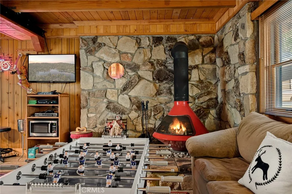 Theres a certain magic to a true A-framean architectural form that feels both nostalgic and enduring, where design and nature exist in perfect harmony. At 348 Brentwood Drive, that magic is fully realized. Set beneath a canopy of towering pines on one of Lake Arrowheads most coveted streets, this timeless retreat captures the essence of authentic mountain living. Backing directly to the National Forest, the property offers a rare sense of privacy and connection to naturewhere deer wander through your backyard, birdsong fills the air, and every season brings a new, ever-changing landscape. Wrapped in rich tongue-and-groove wood detailing, the home unfolds with warmth and intention. Soaring vaulted ceilings and a dramatic wall of glass define the main living space, inviting natural light to pour in while framing the surrounding forest like a living work of art. The open-concept design seamlessly connects the living room, dining area, and kitchencreating an atmosphere that feels both expansive and intimate. A statement fireplace anchors the room, offering the quintessential cabin experience for cozy winter nights and effortless entertaining. Above, a lofted level overlooks the great room, providing a flexible retreatideal as a reading lounge, creative space, or additional sleeping quarters for guests. The lower level introduces a more relaxed, social energya dedicated game and lounge space complete with its own fireplace and wet bar. Designed for connection and entertainment, this level offers the perfect setting for hosting, unwinding, and creating lasting memories. Step outs