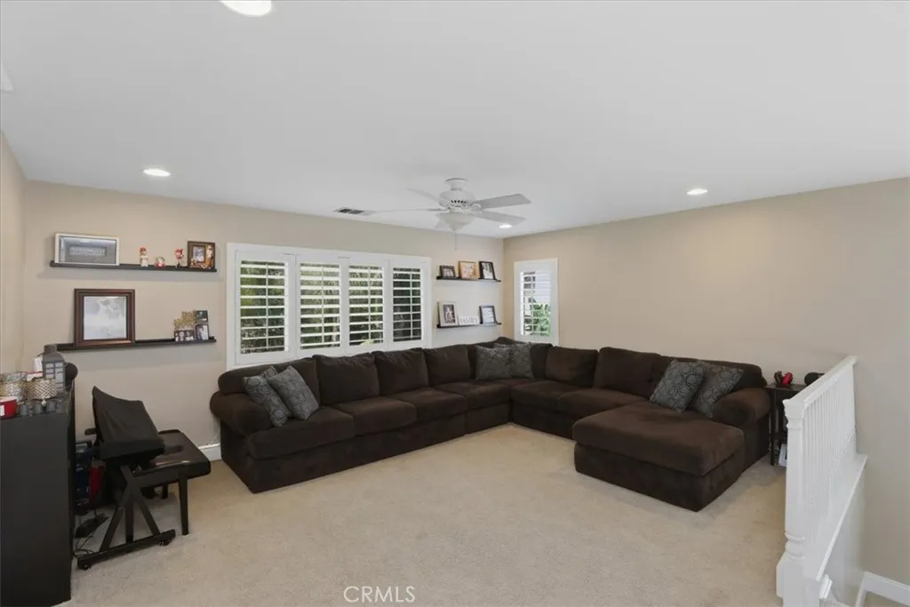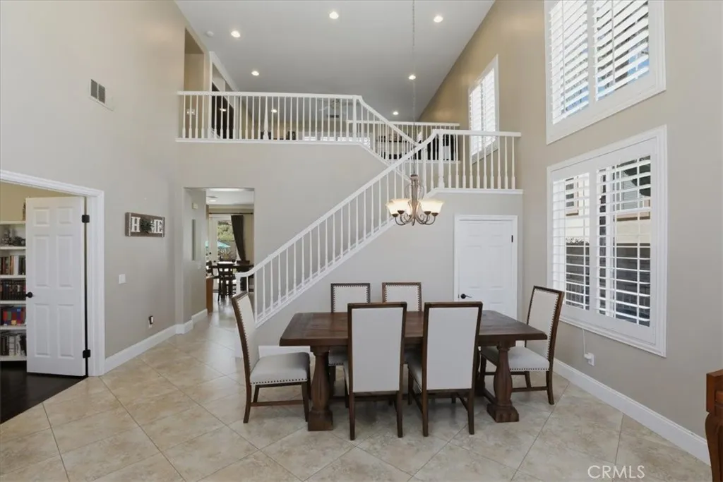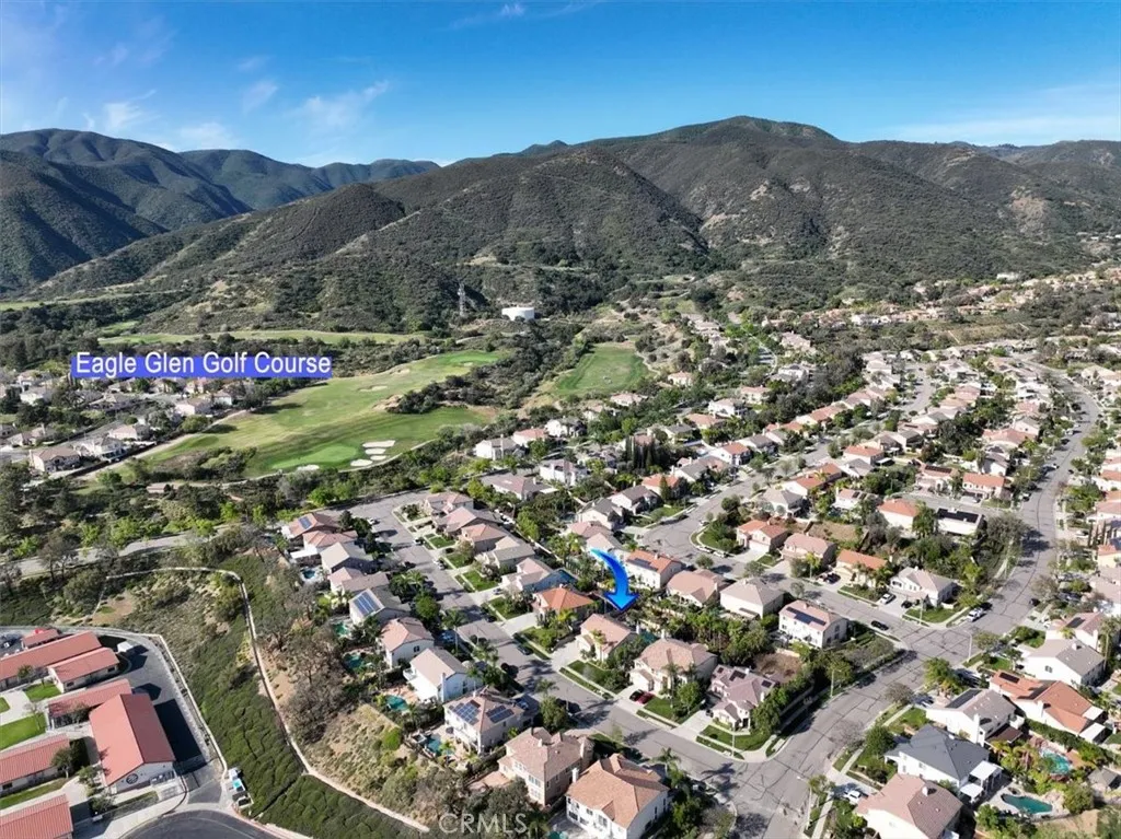 Paradise found in the highly sought-after Eagle Glen community! This exceptional home showcases one of the most desirable floor plans, offering approximately 2,885 square feet of well-designed living space with four bedroomsincluding a convenient downstairs bedroomthree full bathrooms, a dedicated downstairs office, and an expansive upstairs loft/bonus room. Step inside to a grand entry featuring dramatic soaring ceilings, creating a light-filled and inviting atmosphere. The formal living and dining rooms set the stage for elegant entertaining, while the spacious family room features a built-in entertainment center and a stunning granite-surround fireplace with a custom mantle. The island kitchen is both functional and stylish, complete with granite countertops, stainless steel appliances, a built-in computer desk, and under-cabinet accent lighting. Upstairs, youll find three additional bedrooms, two bathrooms, and a generous loft/bonus room with custom built-insperfect for a media space large enough to accommodate an 85-inch TV. Throughout the home, enjoy thoughtful upgrades including plantation shutters, French doors, 7-inch baseboards, ceiling fans in every room, ample closet space, a custom storage bench, and Nest thermostats. Step outside to your own private resort-style backyardtruly a paradise! Enjoy a sparkling pool and spa with reef step and waterfall, stone seating pony walls surrounding a cozy fire pit, lush landscaping with Queen palms, sago, and Phoenix roebelenii palms, custom landscape lighting, stamped concrete, a lattice patio cover, and even a dog run. Add