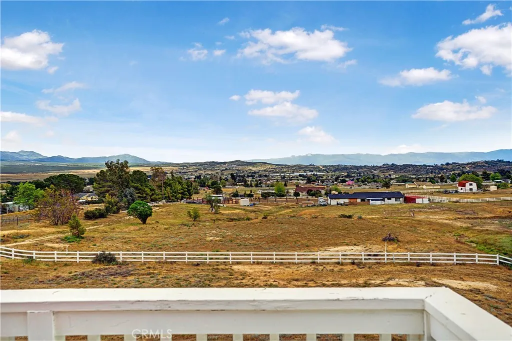 Stunning custom home in the gated community of Lake Riverside Estates featuring TWO primary suites and breathtaking views of Lake Riverside and Cahuilla Mountain, all set on over 2.5 acres of usable land. Designed with both comfort and flexibility in mind, this expansive home offers a bright and open floor plan with high ceilings, recessed lighting, tile flooring, new hardwood flooring on stairs to upper level and new main level AC with also including ceiling fans throughout. The chefs kitchen is a true centerpiece, showcasing granite countertops, an apron sink, center island, breakfast bar, stainless steel appliances, and a custom range hood, all framed by soaring vaulted ceilings and large windows that fill the space with natural light. The main level features a spacious primary suite with a sitting area, walk-in closet, crown molding and a well-appointed bathroom with a jetted tub and walk-in shower, along with two additional bedrooms conveniently located on the main floor. The living room offers a cozy fireplace and French doors that enhance the indoor-outdoor flow, while a formal dining room provides the perfect setting for gatherings. Upstairs, a second private primary suite offers incredible versatility with its own bathroom, dual closets, coffee bar, a mini refrigerator, plus its own AC, heating system, and tankless water heater, making it ideal as a guest retreat, multigenerational living area, game room, or home office. Enjoy peaceful mornings or evening sunsets from the private balcony overlooking the surrounding landscape, gorgeous mountain views and a lake view