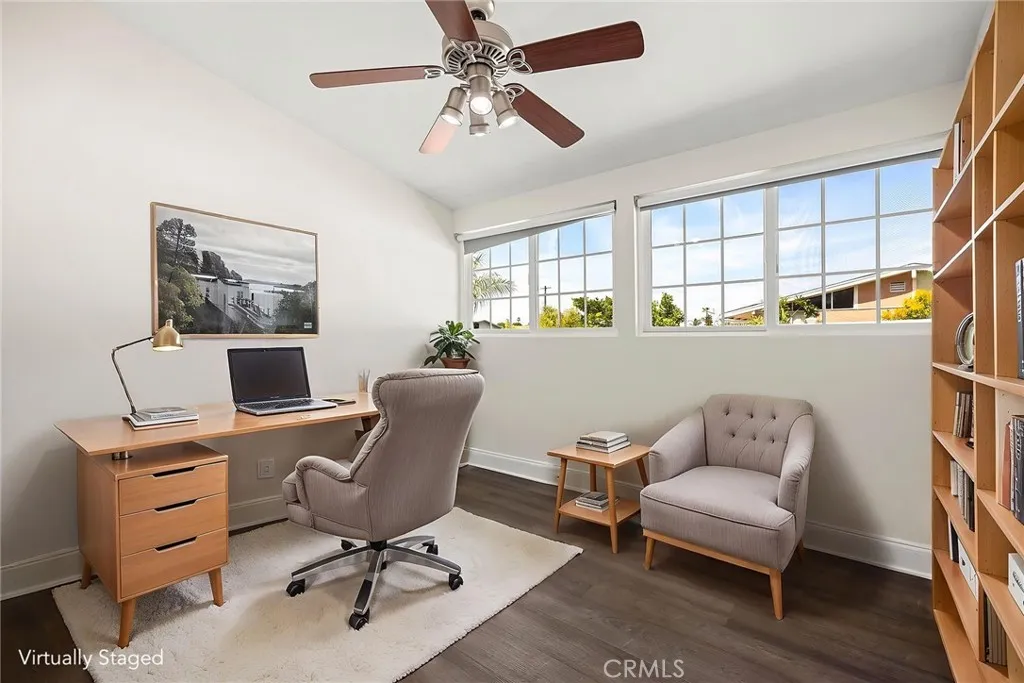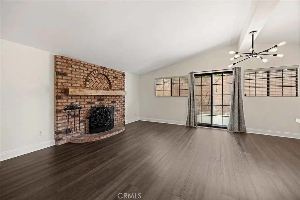 Beautiful 4 Bedroom 2 Bath Single Story Mid Century La Mirada Home in a Quiet Cul-De-Sac Neighborhood. This amazing home isn't a flip, it was a family home that has been lovingly cared for by the people who actually lived there. We think the difference is striking. Upon entering, your friends will be jealous of the open concept great room, perfect for everything from simple family dinners to entertaining a house full of guests. The remodeled kitchen portion includes a huge custom island, quartz countertops, natural cabinets, white subway tile backsplash, stainless gas range, microwave, dishwasher, laminate flooring, dramatic pendant lights, and recessed lighting. The living area portion of the great room boasts vaulted exposed beam ceilings, laminate flooring (same as kitchen), inspired light fixtures, exposed brick fireplace, and a new wood mantle. There has been an intentional effort to keep the great room area warm and welcoming while still light, clean and contemporary. Moving down the hallway that leads to the bedrooms, you'll first come across a very convenient 3/4 bath that doubles as guest restroom and on suite bathroom for Bedroom #2. Bedrooms #2 and #3 feature laminate flooring, closet storage, vaulted ceilings, and modern ceiling fans. Bedroom 4 is on the other side of the hallway and features carpet flooring, vaulted ceilings, and a newer ceiling fan. The primary bedroom is also on this side of the hallway, and in addition to vaulted ceiling, a spacious closet, custom accent wall, and newer ceiling fan, it also sits directly adjacent to the remodeled full bathro