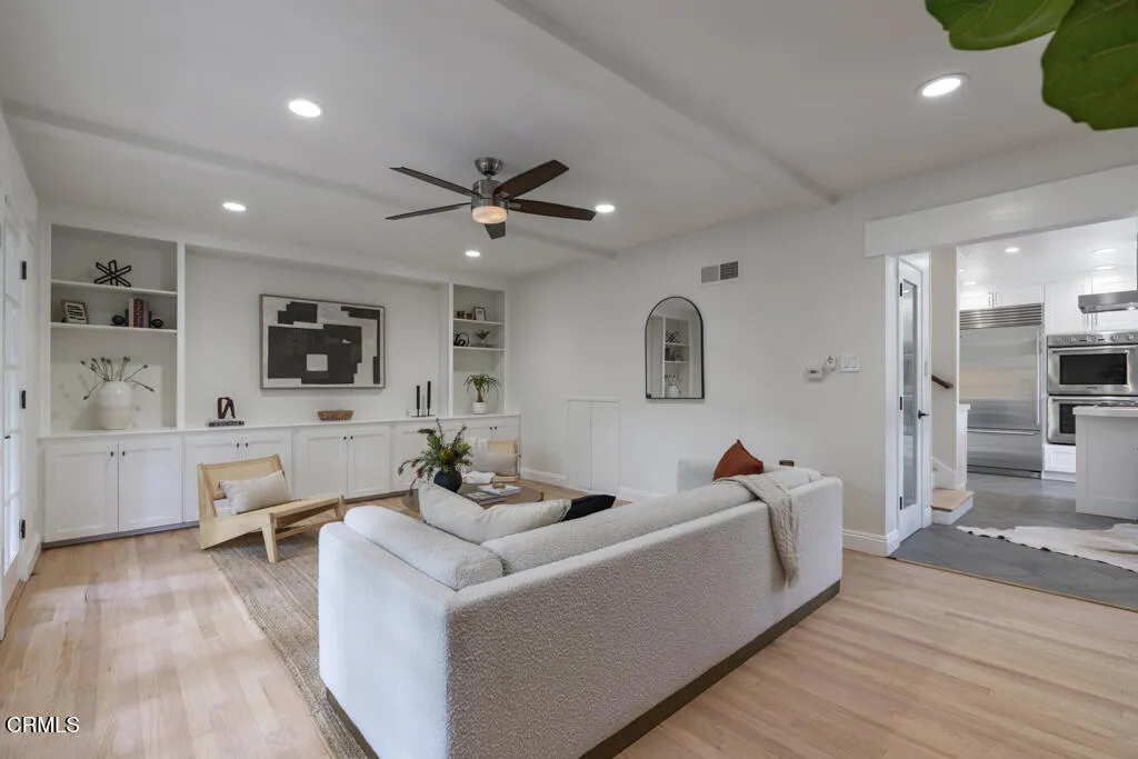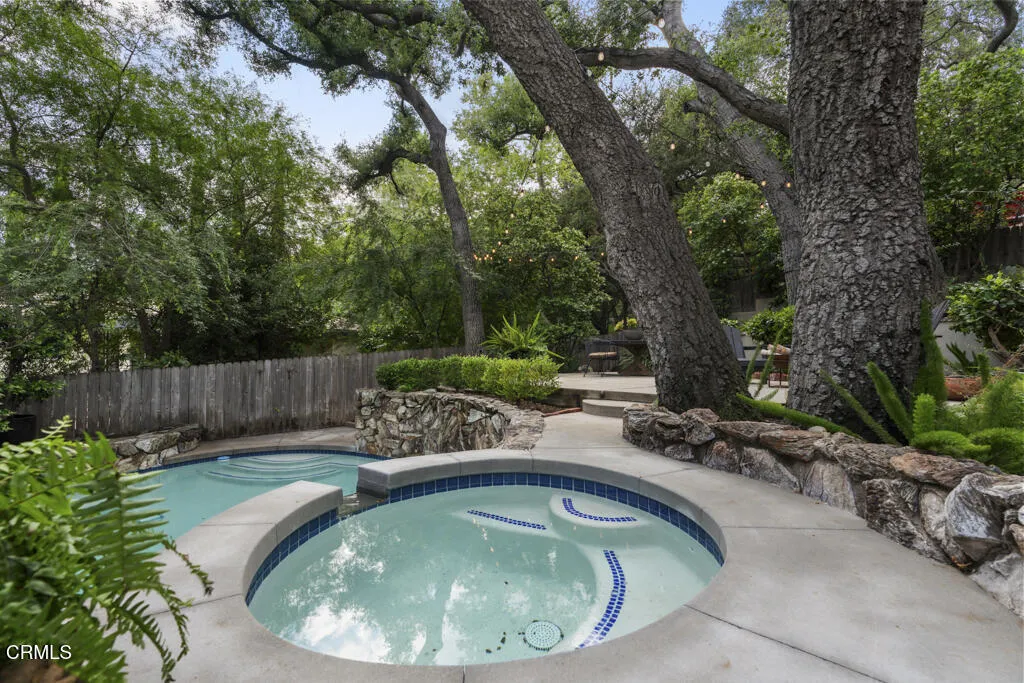 Tucked away in the private Glenwood Oaks enclave of Crescenta Highlands, this beautifully updated home offers a rare blend of refined living and natural serenity. From the moment you arrive, the property evokes a sense of peaceful retreat--feeling worlds away from the city while remaining conveniently close to everything you need. Inside, the home features two spacious, light-filled living rooms with natural hardwood floors. One showcases a cozy fireplace, while the other is enhanced by custom built-in cabinetry. Both spaces open through elegant French doors to private outdoor patios, creating a seamless connection between indoor comfort and outdoor living. The chef's kitchen is thoughtfully designed for both everyday use and entertaining, featuring a professional-grade gas cooktop, double ovens with rotisserie, a Sub-Zero refrigerator, stone countertops, and a peninsula with seating. Adjacent to the kitchen, the dining area offers custom built-in seating--perfect for gathering with family and friends.Three generously sized bedrooms provide comfort and functionality, each complete with custom built-in closets. The two bathrooms are finished with exceptional attention to detail, including custom white oak cabinetry, marble and limestone countertops, Zellige and Cle tile, and designer plumbing fixtures. An effortless indoor-outdoor flow leads to the backyard, where lush landscaping surrounds multiple areas for lounging, dining, and entertaining. The grotto-style pool and spa--with a cascading waterfall--create a tranquil, resort-like setting ideal for relaxing at the end of t