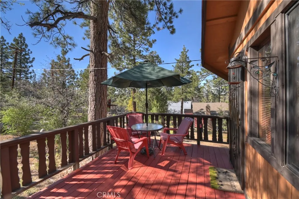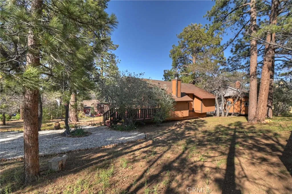 Tucked into a peaceful pocket of Sugarloaf just a few homes from the National Forest, this captivating chalet-style retreat delivers the mountain lifestyle buyers are searching for ~ Set on an expansive 6,250 sq ft lot, the property offers space, privacy, and that coveted away from it all feeling, yet youre only 10 minutes from all the dining, shopping, slopes, and lake activities Big Bear is known for ~ Step inside to an inviting open-concept layout designed for connection and comfort. Soaring tongue-and-groove ceilings bring warmth and architectural charm, while natural light fills the space, creating an airy, welcoming ambiance perfect for relaxing after a day outdoors or entertaining friends and family ~ Anchoring the living room, a charming wood burning fireplace serves as the focal point, creating the perfect cozy mountain ambiance for crisp evenings and unforgettable gatherings ~ The home features two generously sized bedrooms, offering plenty of room to unwind and recharge ~ A laundry area with washer and dryer adds everyday convenience, making this property as functional as it is charming ~ Outside, the oversized lot provides endless potential, whether you envision outdoor entertaining, additional parking, or simply room to breathe under the pines ~ A detached 12X12 storage shed is ready to house all your mountain toys, kayaks, bikes, skis, and more so you can fully embrace the Big Bear lifestyle ~ Whether youre looking for a full-time residence, weekend escape, or investment opportunity, this property checks all the boxes with location, character, and usability ~